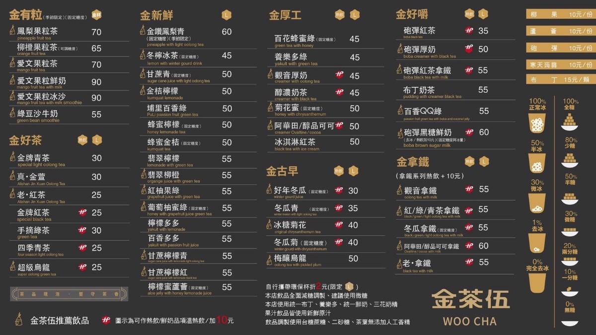 (菜單取自金茶伍手作飲品-板橋中正店粉絲團)