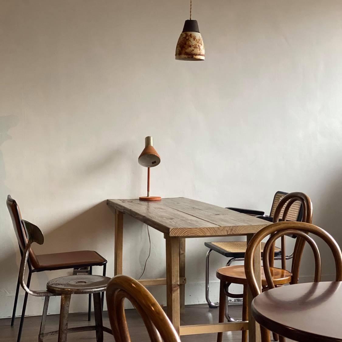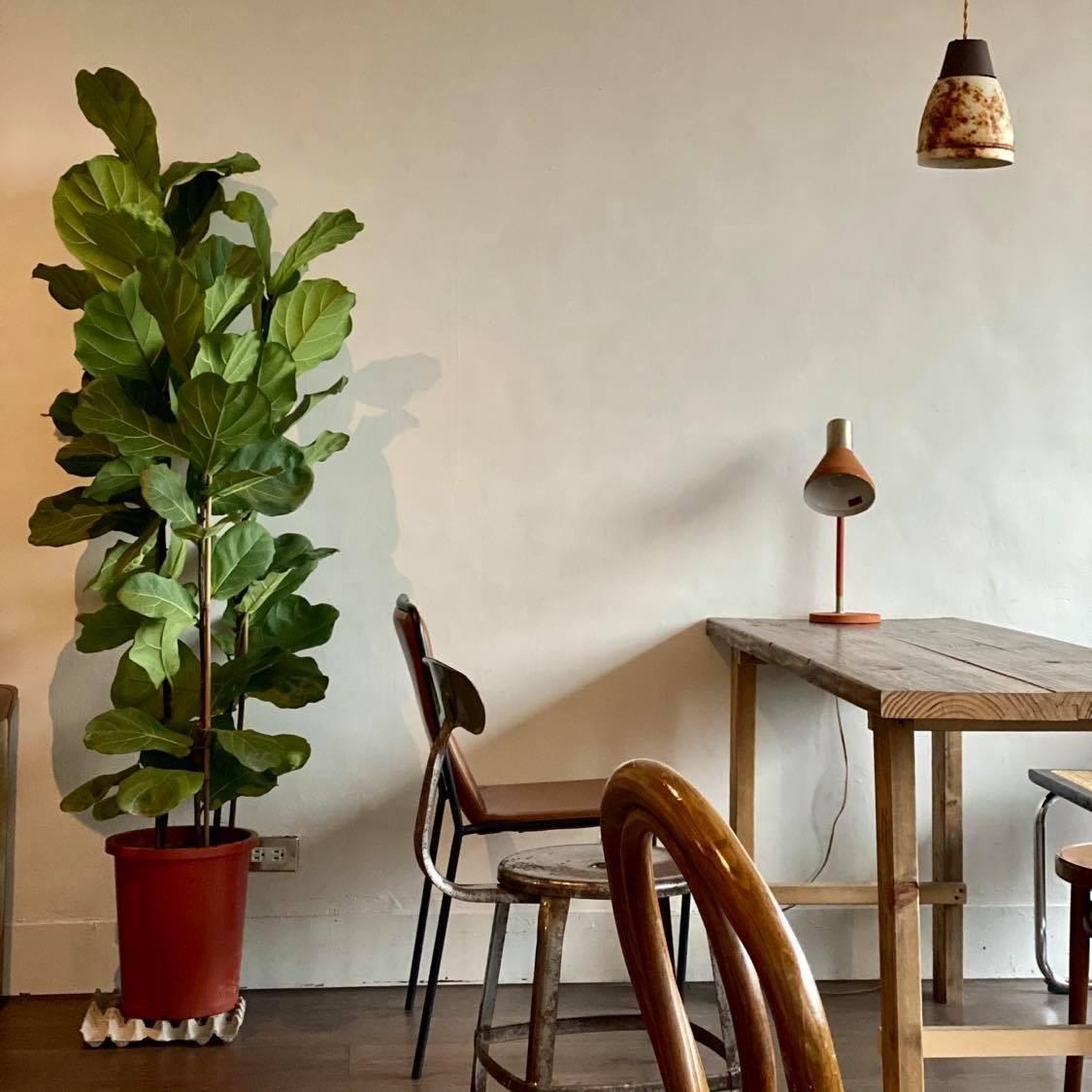 好久沒遇到平日也要排隊的咖啡廳,14:00營業,13:40抵達成為排隊開頭,上去前數了一下總共10個人在等,圖最後一張就是剛上去全滿的樣子。雖然真的很扯!但環境氛圍光線很棒,木質調風格、古樸擺飾,坐窗邊還可以從半開的百葉窗隱約看飛機正飛上空!