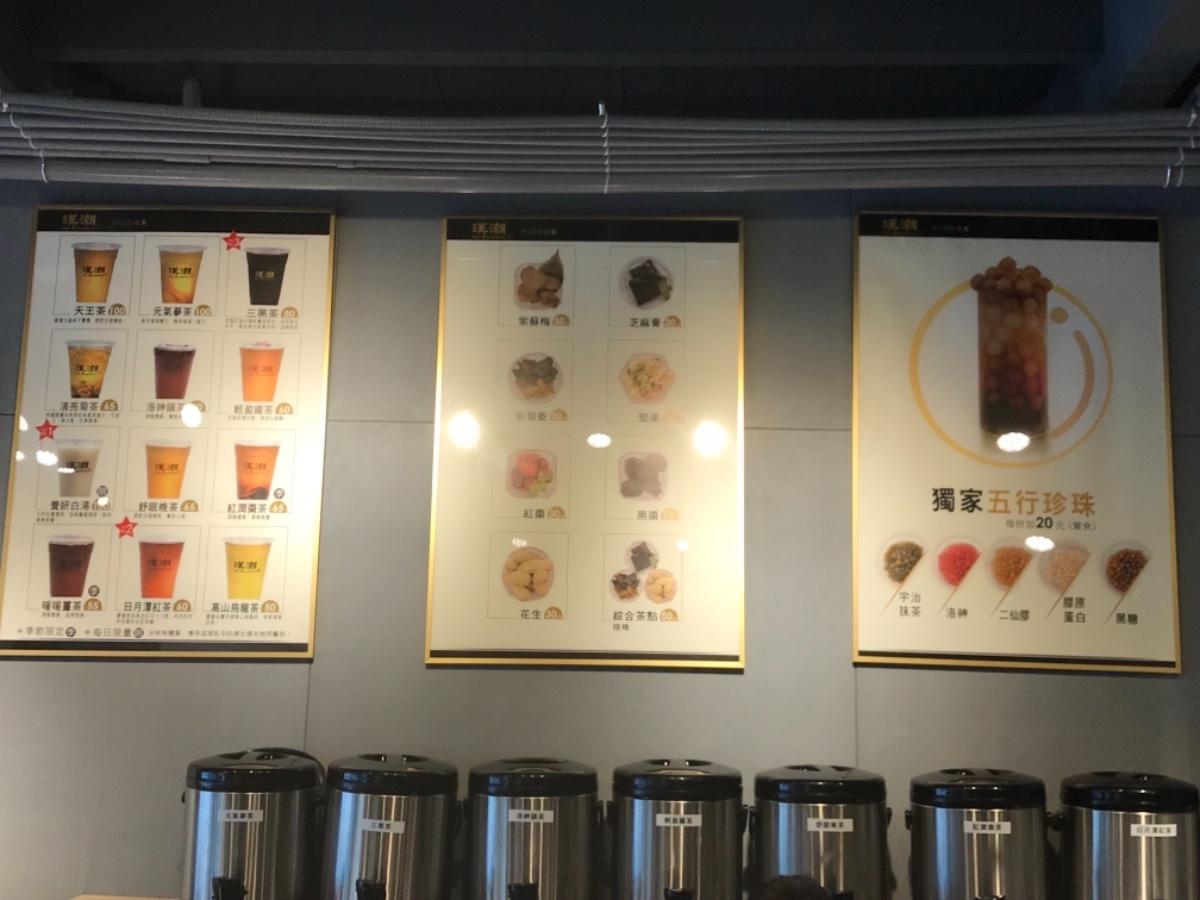 除了賣健康的養生飲品,最特別的就是五行珍珠,採用天然食材製作,紅色是洛神、白色膠原蛋白、綠色抹茶、黃色二仙膠、黑色黑糖,原本很怕二仙膠會苦但五種吃起來都很Q彈而且只有食物淡淡的香氣沒有怪味道,配任何飲品都適合