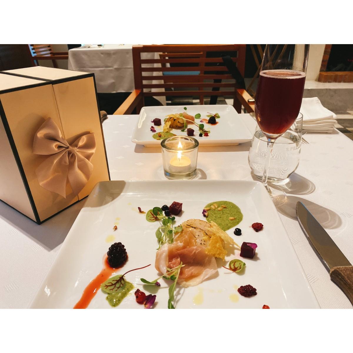 走到店門口才發現鋪了個紅毯,走進去會有接待人員,建議先訂位,餐廳有一樓及樓中樓座位,如果想要私人空間的話,這家就有些可惜無提供較隱私的空間,開放式的與其他客人一起在一層樓享用。推薦的原因是餐點金額坐落在千元,能給人較浪漫的氛圍,算是CP值『可』的地方,我覺得用的椅子並不舒服、木椅子也沒有地方掛自身包包衣服,顯得不OK;然後每桌都有小蠟燭提升氣氛。