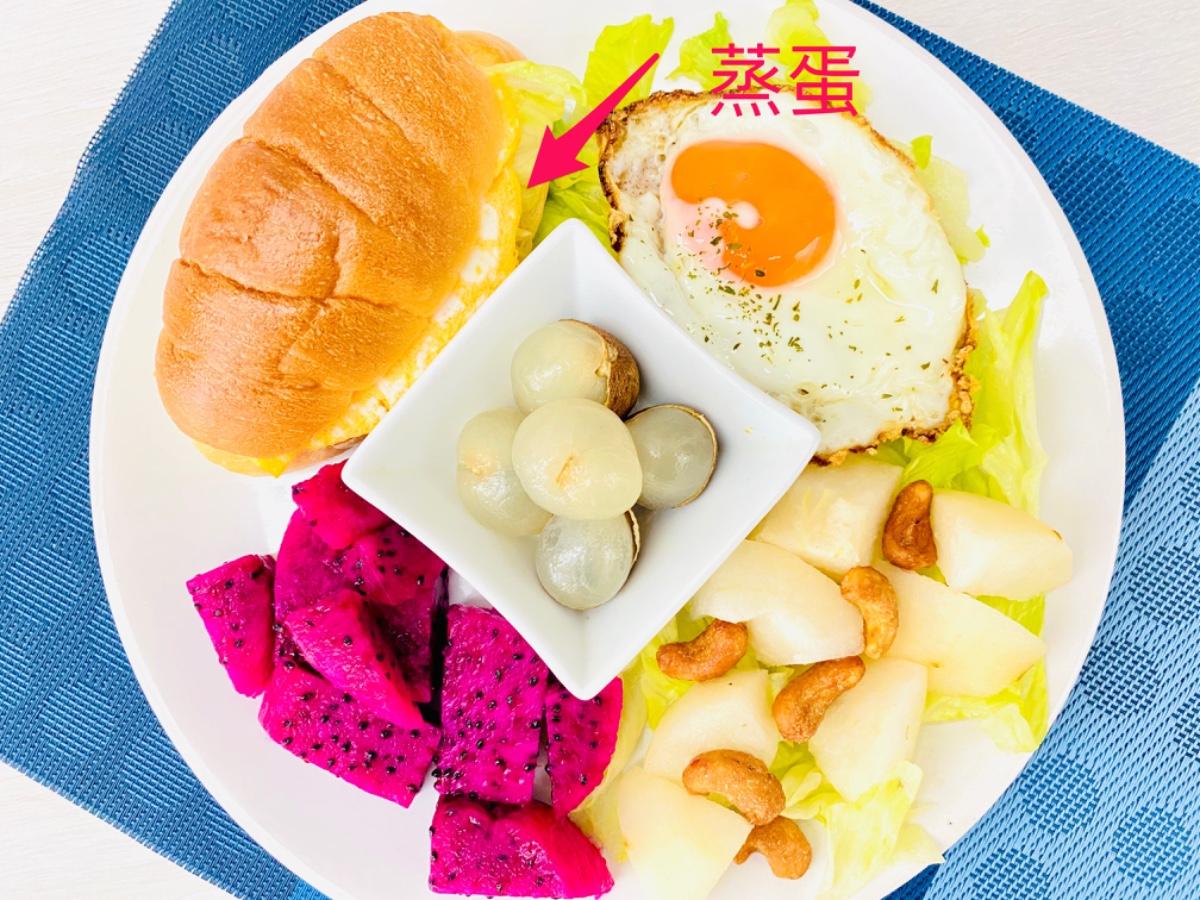 主食:太陽蛋生菜🥬蒸蛋鹽麵包