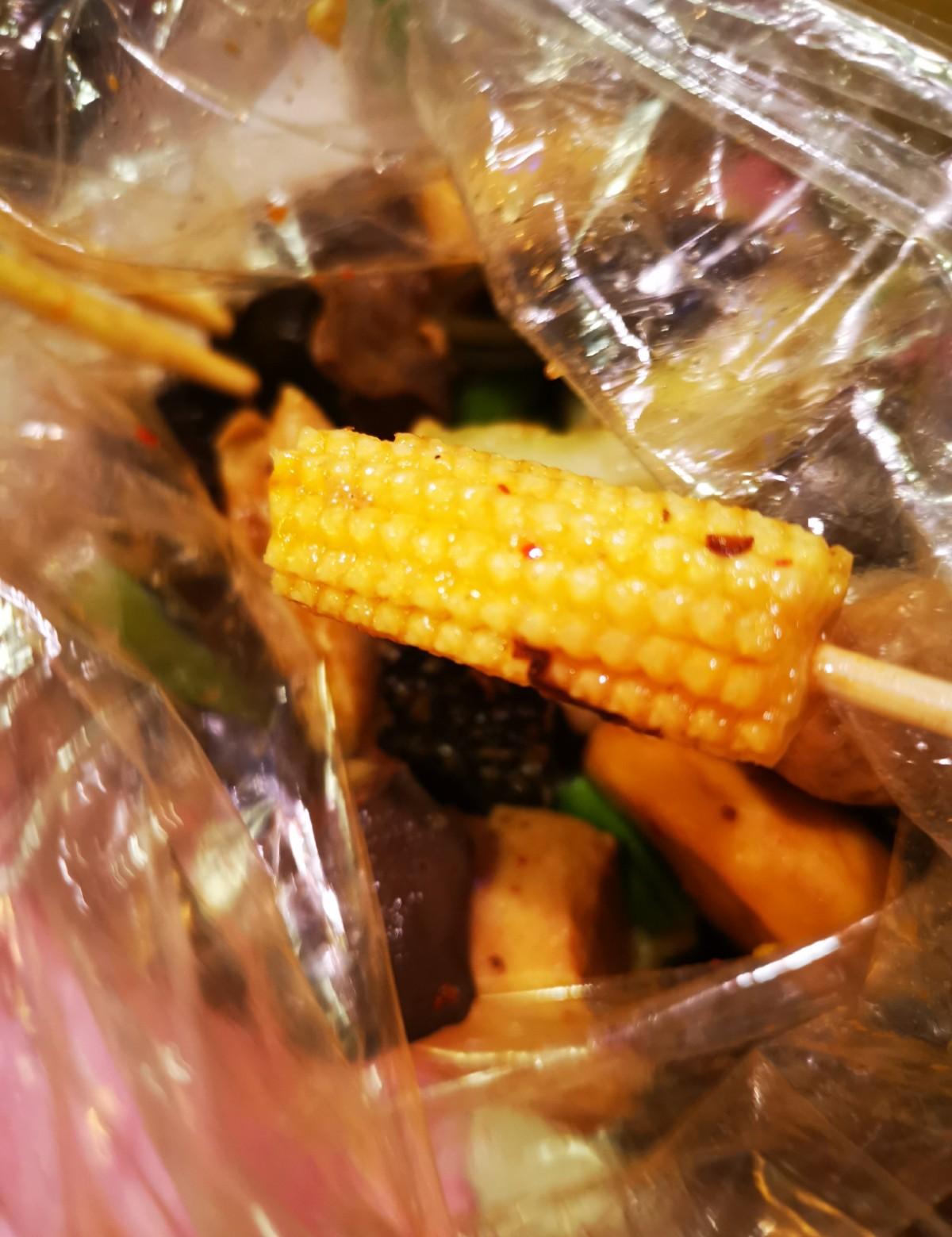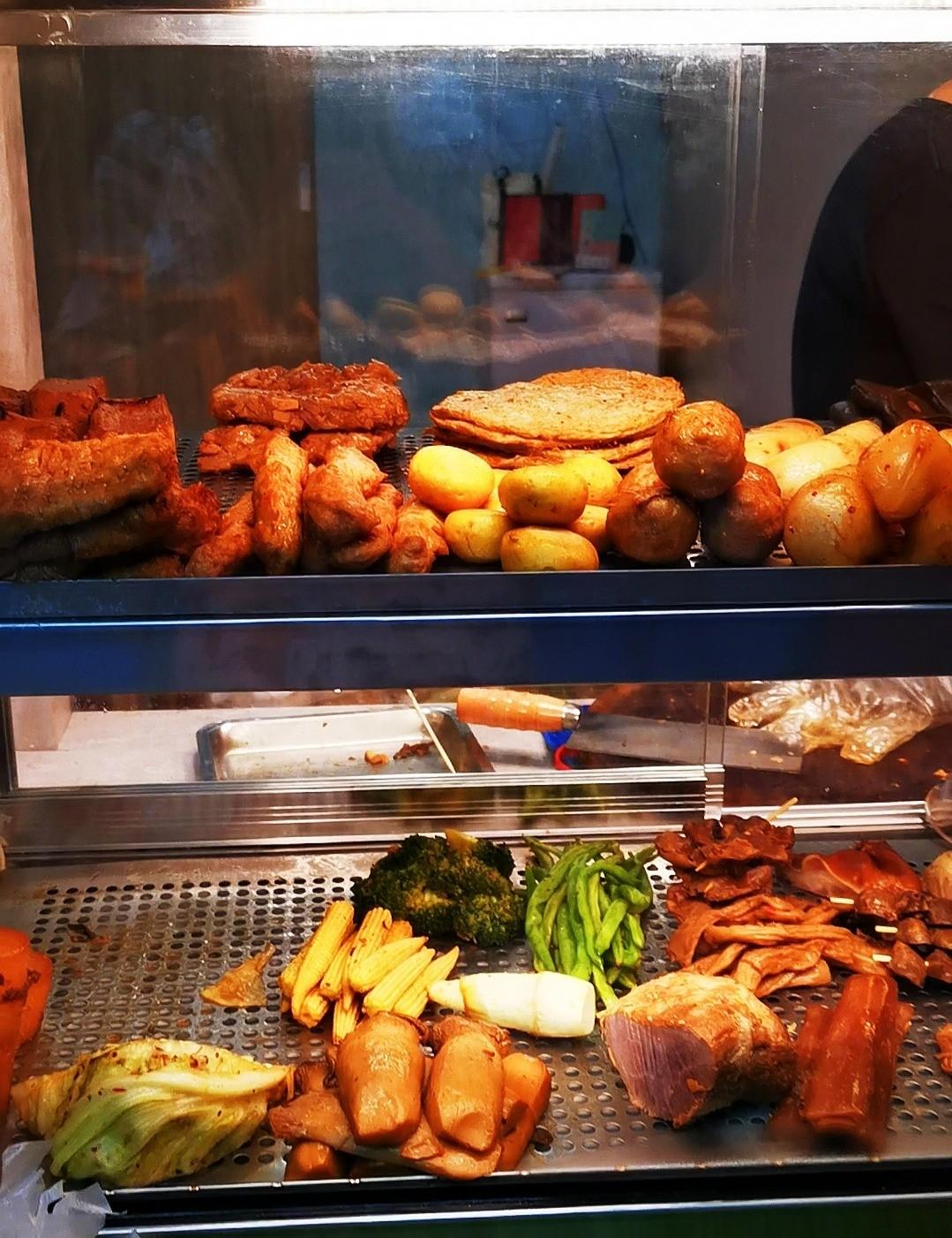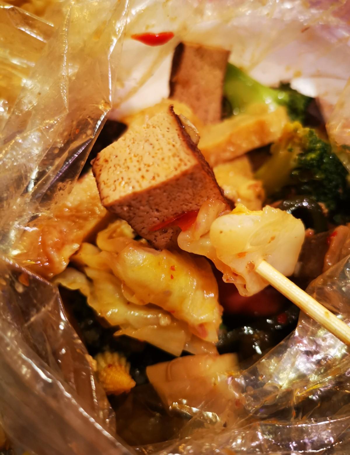 我們點了豆干和花椰菜及杏鮑菇還有甜不辣以及米血和鴨心、爆漿魚包蛋及蔬菜等~