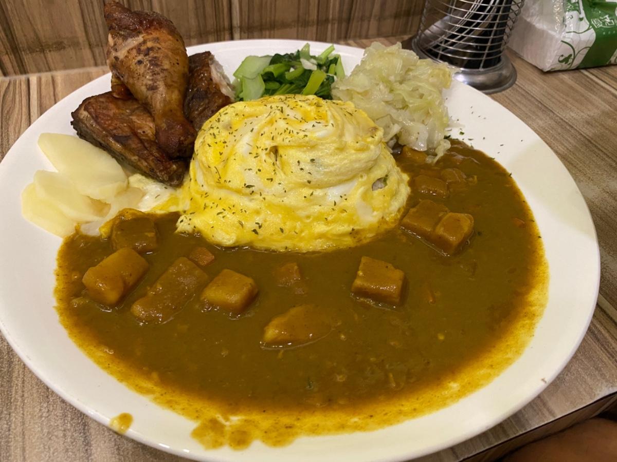 之前吃過記得不錯 今天突然想吃😋 還是ㄧ樣好吃啊 有兩份菜還有ㄧ份主食 蛋可以選擇全熟或半熟 我覺得還不錯兩張百元鈔票以內就能吃很飽了 👍🏻 燒肉蓋飯100 烤雞咖哩蛋包飯200