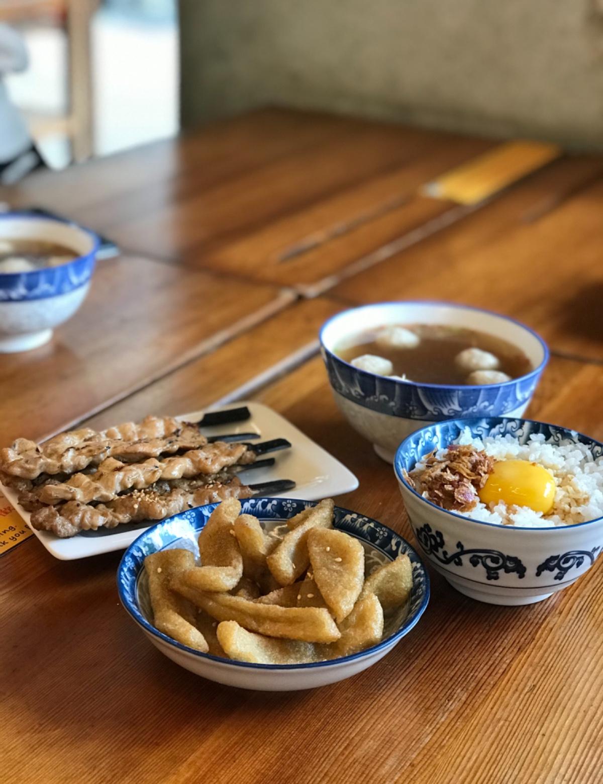 當時點的是有附餐兩串烤肉串跟一碗魚丸湯的套餐系列