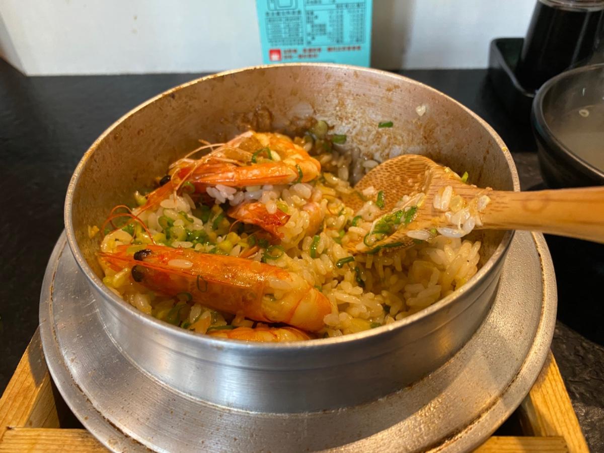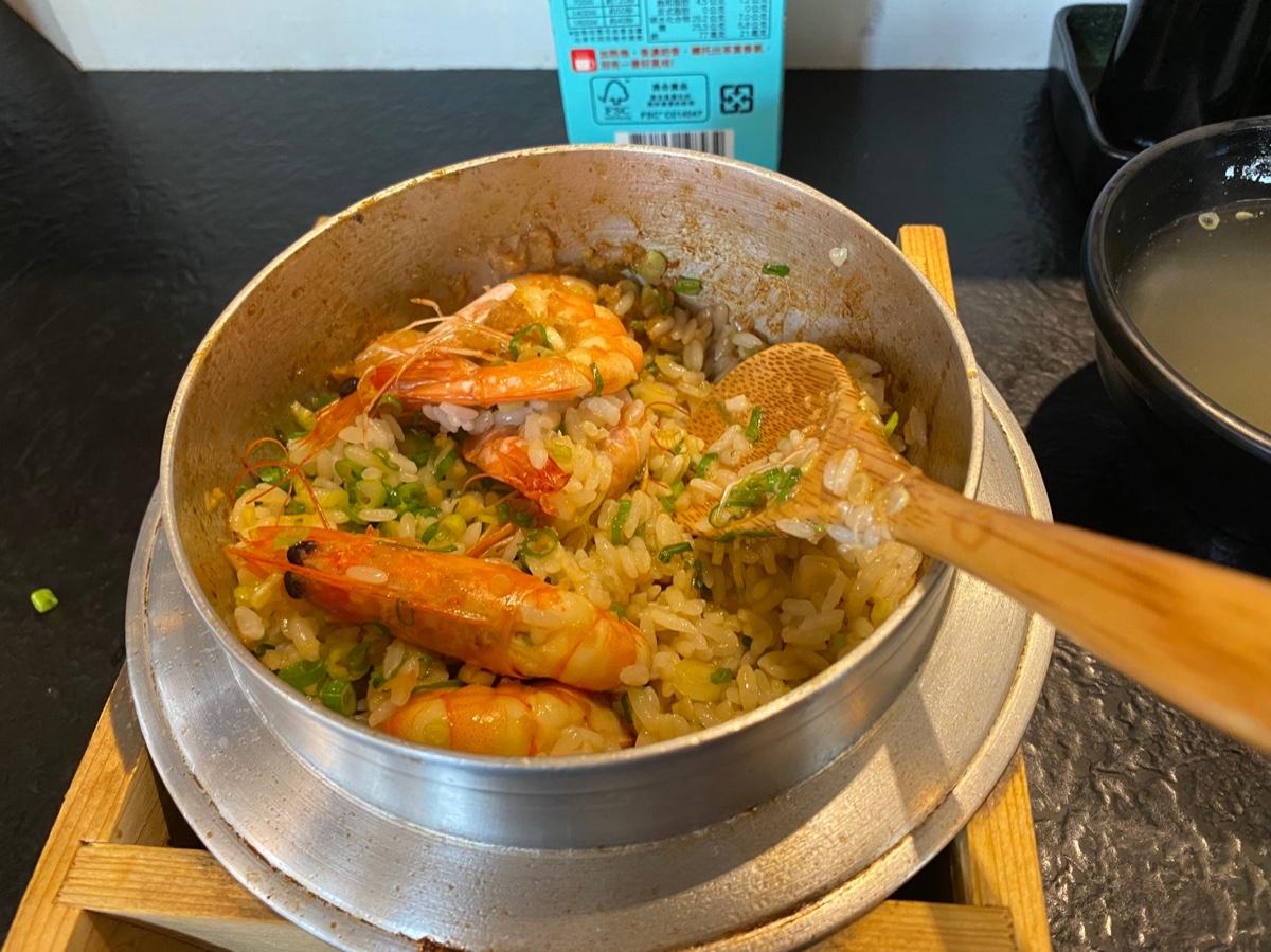 我個人非常喜歡 有鮭魚就大大加分啊🥰 而且炙燒沒炙燒鮭魚碎末鮭魚卵 給你ㄧ次滿足👍🏻 三味鮭魚親子丼280 釜燒蒜香鮮蝦丼220
