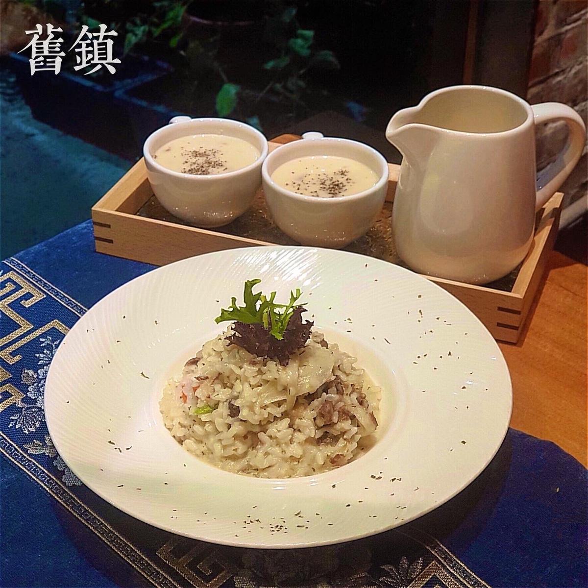 舊鎮連湯品都好好喝啊,精緻的「當日湯品」,剛剛好兩人份的蕈菇濃湯,好喝不膩,一喝下胃都暖了☺️