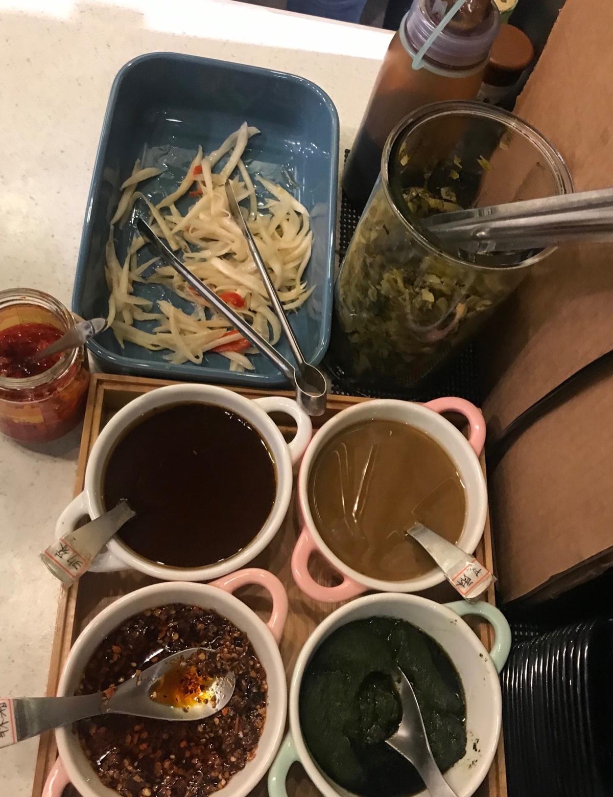 ㄧ進店內就分兩個點餐區,在滷味區可先挑選想吃的食物在給老闆加熱即可,我們選了一份滷味+王子麵ㄧ起吃,櫃檯旁的醬料可自取,推薦榨菜+醬油沾滷味好對味😋。