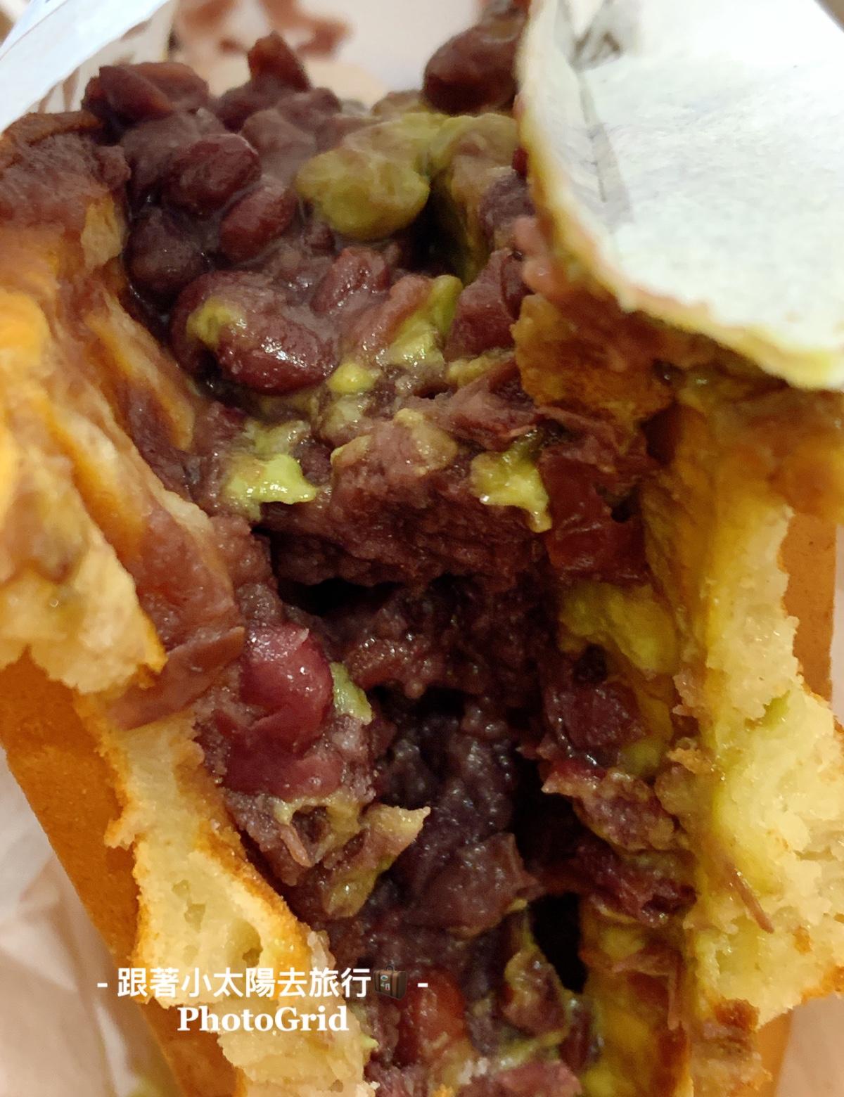 抹上滿滿的抹茶餡與鬆軟紅豆泥,一口下去,抹茶中和了紅豆的甜味,吃來十分有日式風格的口味。