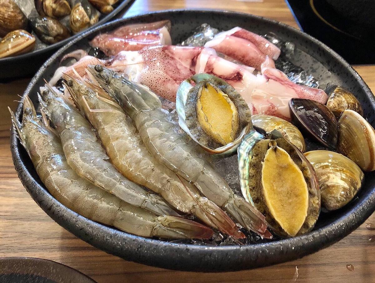 套餐加購 $ 198 可升級海鮮拼盤,豐盛的海鮮拼盤附有 澎湖尖捲 / 鮑魚 / 蛤蠣 / 海白蝦
