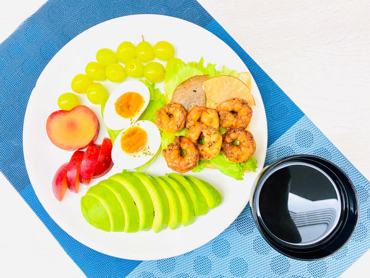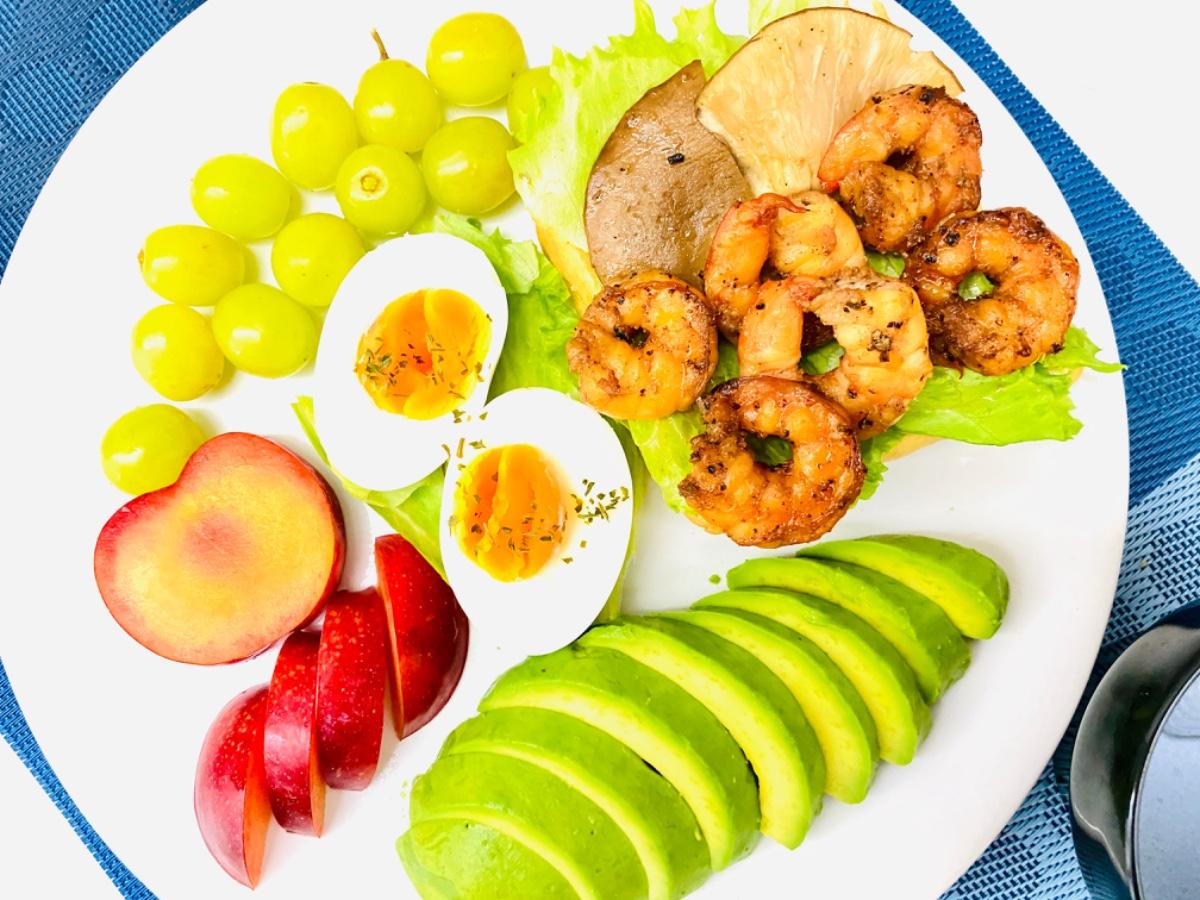主食:烤香菇/煎鮮蝦水煮蛋生菜生吐司