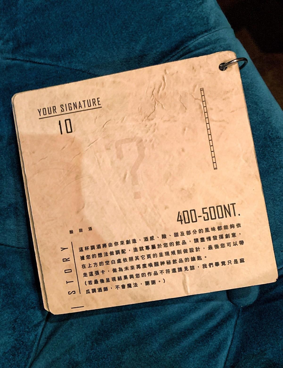 當然店家也有客製特調‼️可以跟bartender 說明自己的喜好,重點是店家連客製特調的酒單都寫了一串很逗趣的文字🤣