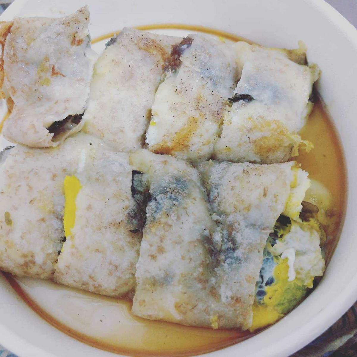 入口是濃濃的皮蛋與九層塔香味,香氣濃郁,如果只有這兩樣料就會略顯單薄。但是強蛋餅還加了起司,讓口感豐富之餘還帶有層次感。皮蛋、起司都是口味重的食物,所以十分容易膩口。不過帶有明顯甜味的醬汁讓口腔瞬間轉換了氛圍,變得清爽不油膩。非常適合大家買回去當宵夜,吃完絕對可以心滿意足的睡個好覺。