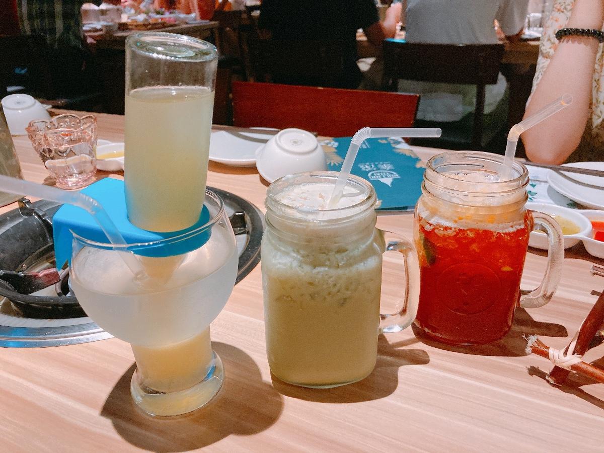 貼心的是菜單上有餐點排行,因為採單點方式,若不知道點什麼就照排行榜點就對了!最推泰拳蝦餅,裡面真的是包著一隻完整的蝦子拿去炸,沾上酸辣醬會想一口接一口!肉類一盤大概也有25~30片左右,四個女生點兩盤就飽了,而且肉質很好!花枝丸也能明顯吃到Q彈的花枝本人,整體食材都算蠻新鮮好吃!但飲料部分就比較看個人喜好了。