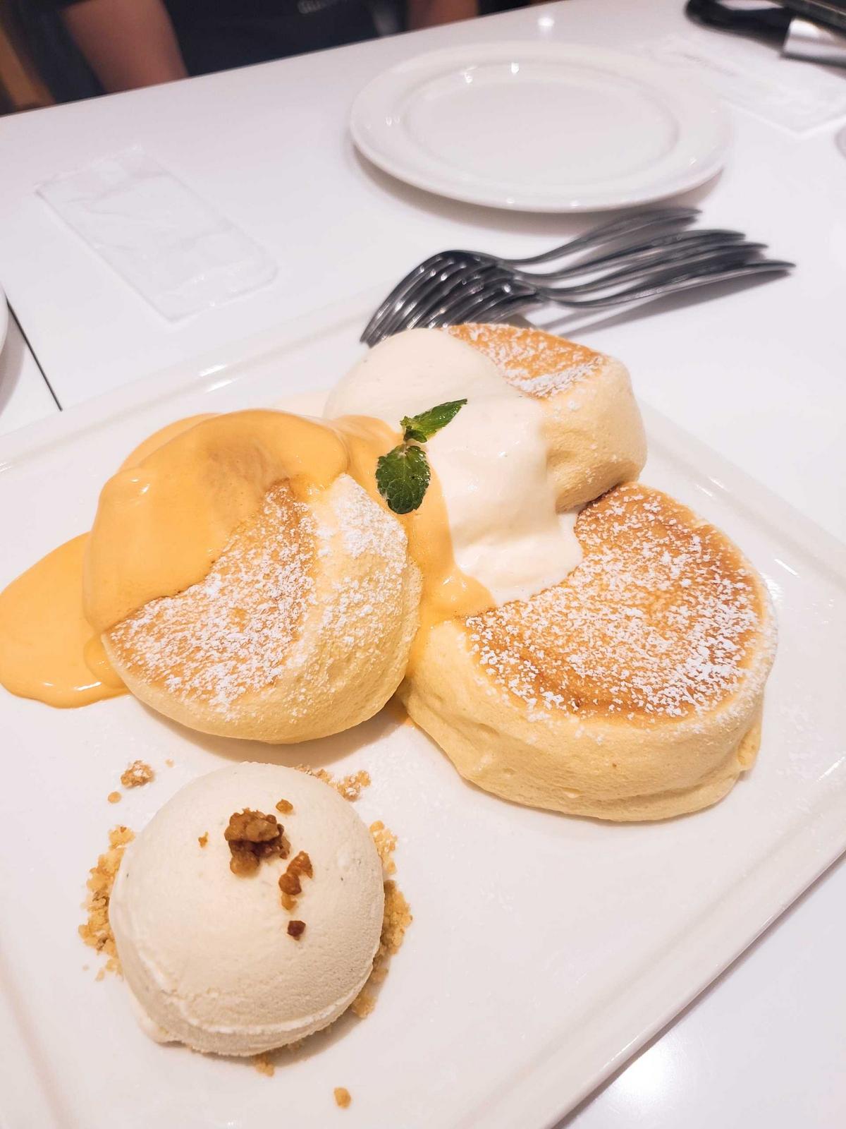 蛋糕體很軟嫩,搭配泰奶餡,跟香草冰淇淋。