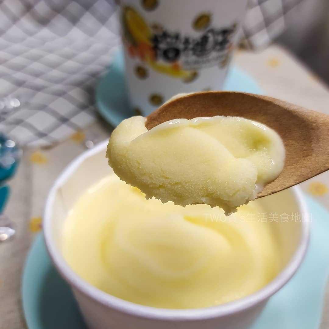 這是四個品項中味道第二淡的(排第三名),用圓形的紙盒裝,綿密的感覺跟小美冰淇淋很相似,把奶香味換成了榴槤味~這個大寶吃了一口,就推回來給我了