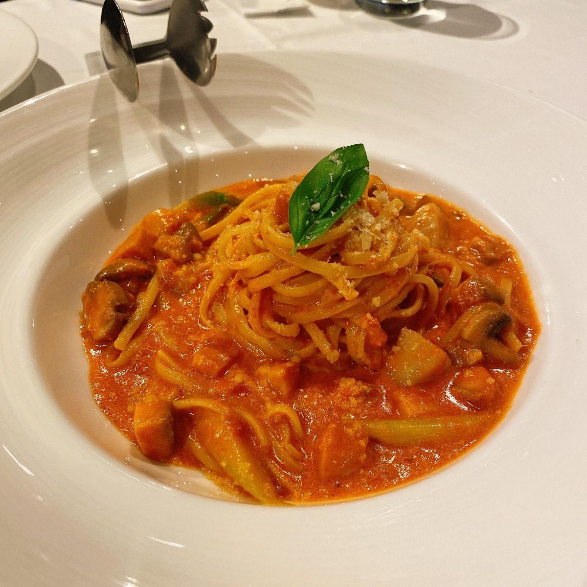 🍝曙光汁鮭魚干貝手工扁平麵$420