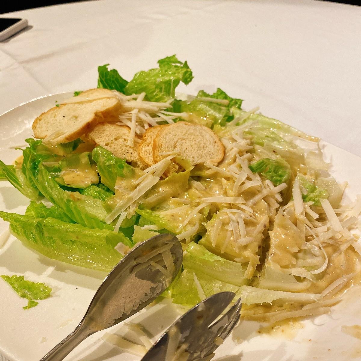 凱薩沙拉上桌後 服務員會在桌邊把菜切小塊 方便我們吃 凱薩醬及起司絲給的超級大方 不小氣