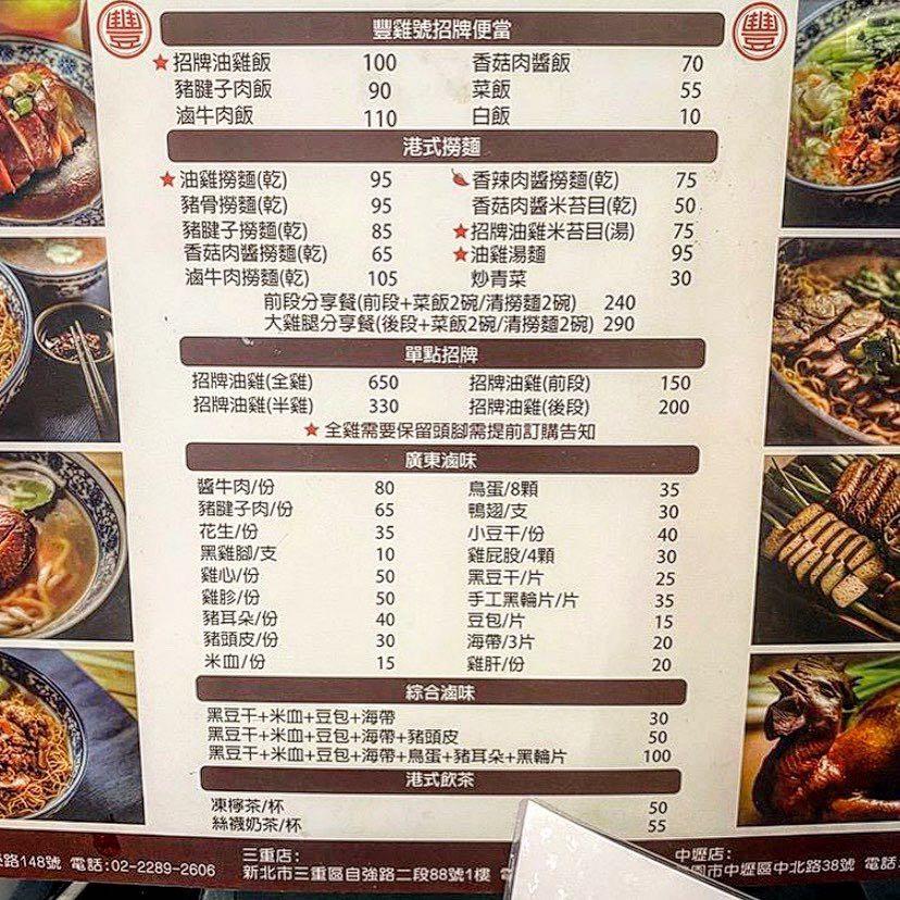 - 🏠:豐雞號 ⏱:11:00-14:00、17:00-20:00 ☎️:02-8985-7747 📬:新北市三重區自強路二段88號1樓 🚇:捷運三和國中站(新北蘆洲站、桃園中壢也有分店) - ✏️有沒有人跟我一樣也喜歡吃港式料理😂😂今天帶大家介紹一間不僅好吃而且價格也很親民的港式油雞、撈麵和廣東滷味等招牌料理😍😍不禁讓人垂涎三尺啊! - 🔶滷牛肉撈麵 NT$:105 🌕🌕🌕🌕🌘 (4.2/5) 一端上來份量非常十足! 滷牛肉非常軟嫩Q彈吃起來很入味 撈麵本身不會太過軟爛 吸附著滿滿店家特製的醬汁👍 整體口味偏鹹甜個人非常愛😍😍 - 🔶招牌油雞飯 NT$:100 🌕🌕🌕🌕🌑 (4/5) 在香港油雞是一道熱門的廣東菜 以加熱的醬油浸熱,再用許多香料增添風味 肉質吸附滿滿的醬油有點微鹹 但完全不乾柴而且更加入味👍 雞跟飯用碗盤各自分開這點真的很貼心 飯上有滿滿的配菜用來解膩 - 🔶滷牛肉飯 NT$:100 🌕🌕🌕🌕🌑 (4.1/5) 基本上就是上面兩道菜的融合體 滷牛肉配上飯菜! 給大家又更多元的一個好選擇😍 - 🔶綜合滷味 NT$:100 🌕🌕🌕🌖🌑 (3.8/5) 這盤真的超級澎湃! 有豆干、米血、海帶、鳥蛋、豬耳朵等等 整盤是冷的但個人比較喜愛熱熱的滷味😂😂 我們還有額外加購雞腳10元 結果送來真的超級大😂肉質也很讚! 但真的滷的超級入味喜歡吃的人一定要點一盤一起分! - 🔶絲襪奶茶 NT$:55 🌕🌕🌕🌕🌘 (4.3/5) 之前吃港式餐廳港奶都很貴 但這間用一個手搖飲的價格就可以買到真的很佛心! 茶味很重喜歡喝港奶的人一定非常喜歡😍 而且吃那麼多偏重口味的主餐一定要來一杯的吧😂 - 🔶凍檸茶 NT$:50 🌕🌕🌕🌕🌑 (4.1/5) 這杯大概是最解膩的飲料! 整杯帶點酸度把口中的味道沖洗掉 甜度跟酸度都恰到好處好喝~ - 🔶藥膳雞湯 🌕🌕🌕🌕🌘 (4.3/5) 我覺得這間店最棒的一點 就是藥膳雞湯免費續碗 而且不會過鹹藥膳味也不會太重 小編自己大概喝了快5碗真的好好喝😂😂 - 🔶裝潢環境 🌕🌕🌕🌖🌑 (3.7/5) 店內呈現非常道地的港式風情 餐點也非常多樣很想每份都來一樣😂 整體還會想再訪讓人意猶未盡! - 🌟以上資訊均代表三重店,如分店有差異敬請見諒 - 分類🔍:#吃得保寶飽in新北 #吃得保寶飽in桃園 - #豐雞號 #新北餐廳 #新北必吃 #手機食先 #桃園美食 #桃園餐廳 #台灣美食 #新北美食地圖 #新北美食推薦 #popyummmy #popyummy新北 #三重美食 #招牌油雞 #港式撈麵 #撈麵 #油雞#油雞撈麵#油雞飯#廣東滷味#牛肉撈麵#港式 #港式料理#排隊美食#平價美食#新北美食#台北美食 #秘製滷味#雞肉專家