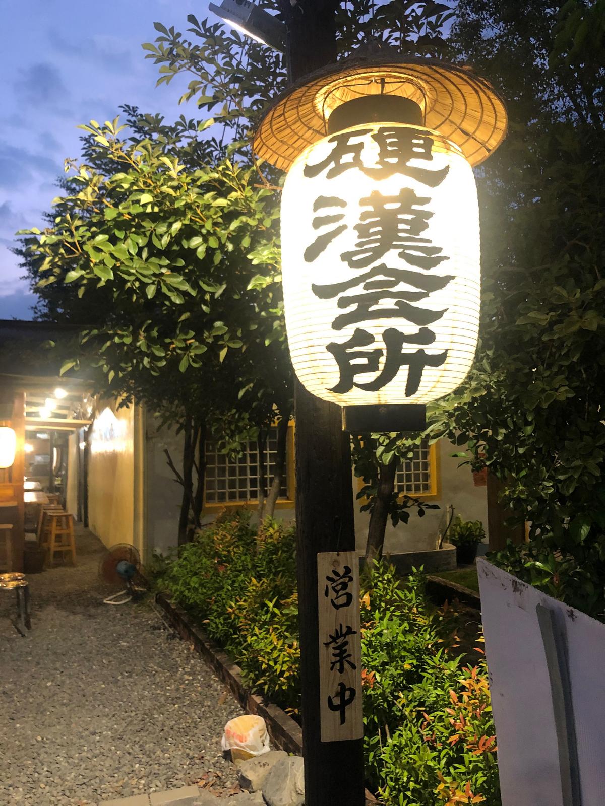 這間「硬漢會所」位在枋寮火車站旁,出了枋寮車站正門向左走不用一分鐘的距離就可看到。從門口看進去就能看到燈籠招牌,往內走進去,小小庭園卻有著濃濃的日本風氣息,原本預定了六點半的位子,我們提前六點就入座了.... 還好!有事先訂位,因爲大概從六點半開始,就開始湧入一大堆人潮了,店內空間不大,能融入的人潮也不多,一下子的時間,店內已經是滿滿的人潮了。