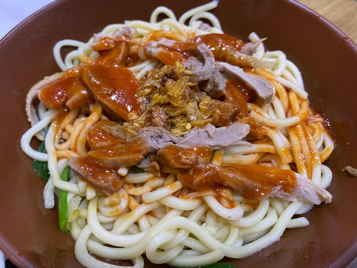 沒有開玩笑,這是吃過絕對還會再回頭的口味。飯的部分,鴨肉的香氣搭配炸的酥脆的油蔥酥,再淋上荷包蛋的蛋液,多層次口感,邊撰文邊流口水了。而乾拌麵也不惶多讓,粗壯的麵條,咬起來相當Q彈,搭配特製甜而不辣的紅色醬汁,忍不住一口接著一口。小碗的份量,女生吃可能還會稍嫌不夠,如果肚子很餓,建議點個大的,或是再搭配其他餐點。
