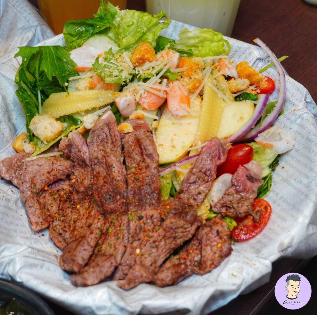 沙拉搭配板腱牛,牛肉半筋半肉口感軟嫩