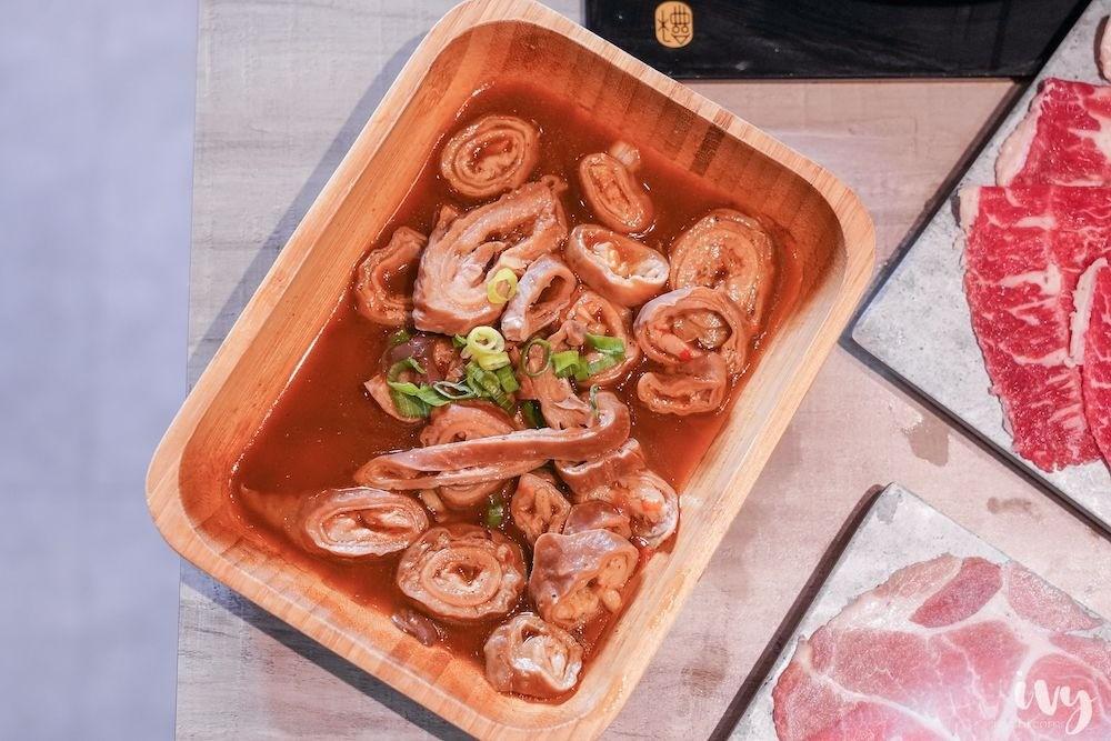 特選板腱牛肉採用與高檔牛排同等級肉品,油花分布細緻如大理石紋理,夾起來不會薄如羽衣,入口油脂相當豐沛,肉香濃厚且軟嫩,口感極佳我喜歡!