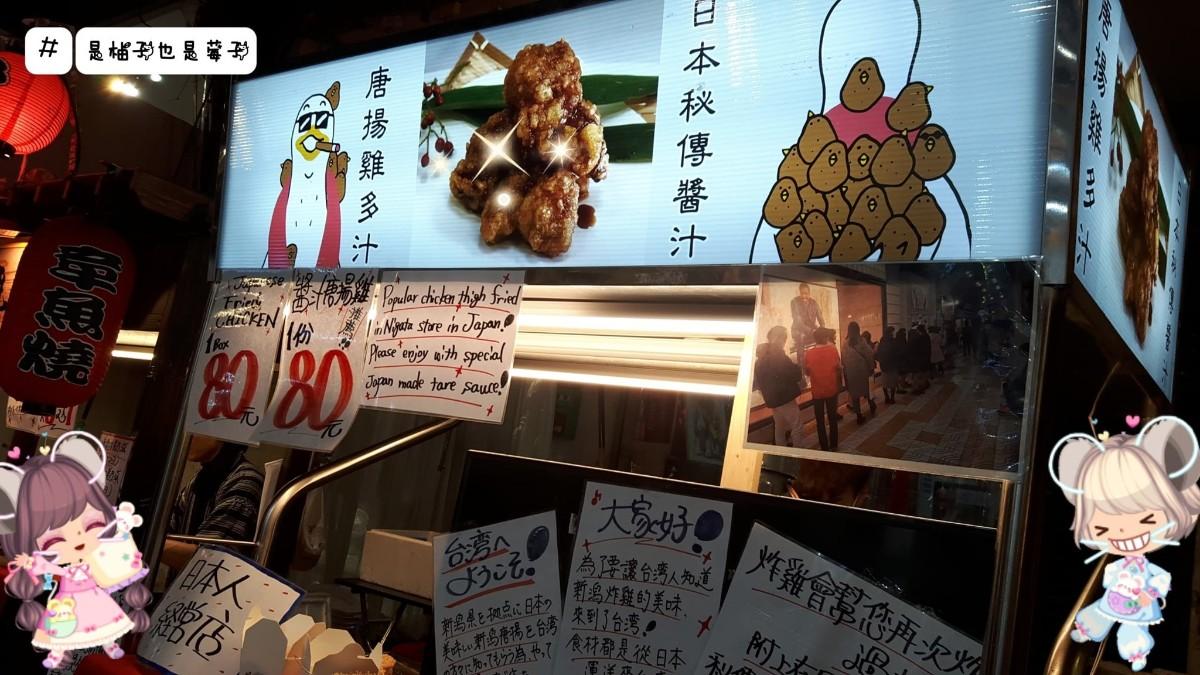 今天我們看到了似乎是日本人來台經營的小攤販*日本秘傳醬汁唐揚炸雞*一份是80元,不知道行情價但應該算平價吧~?