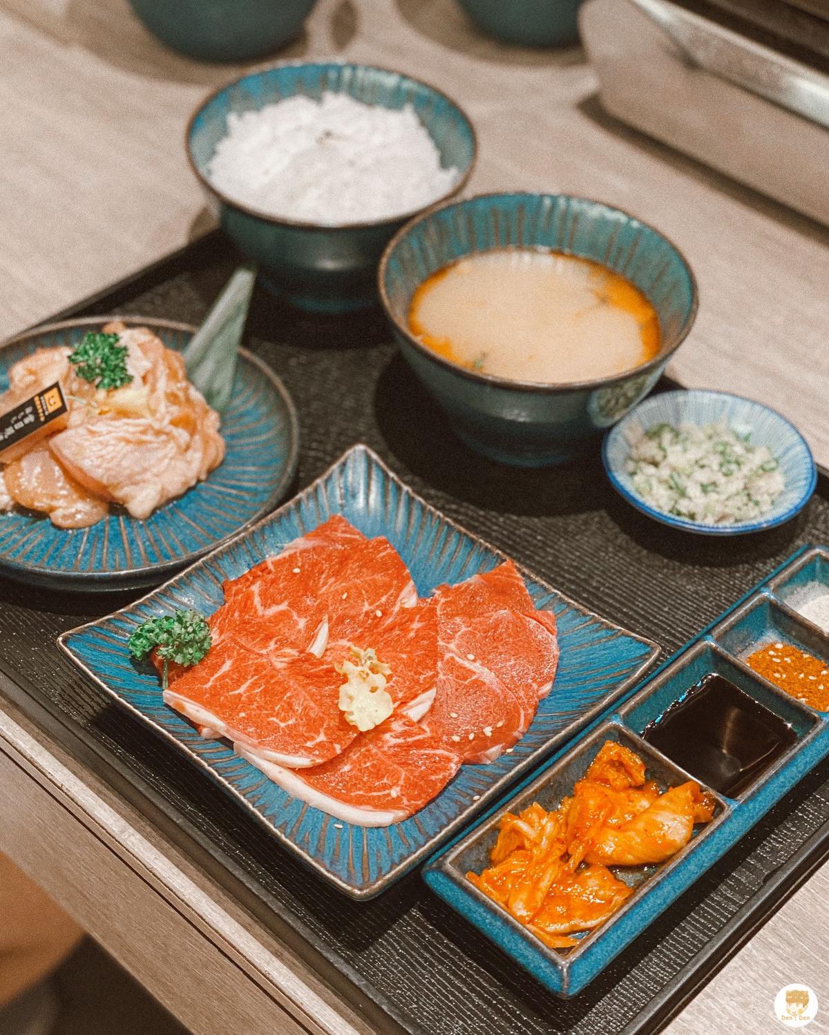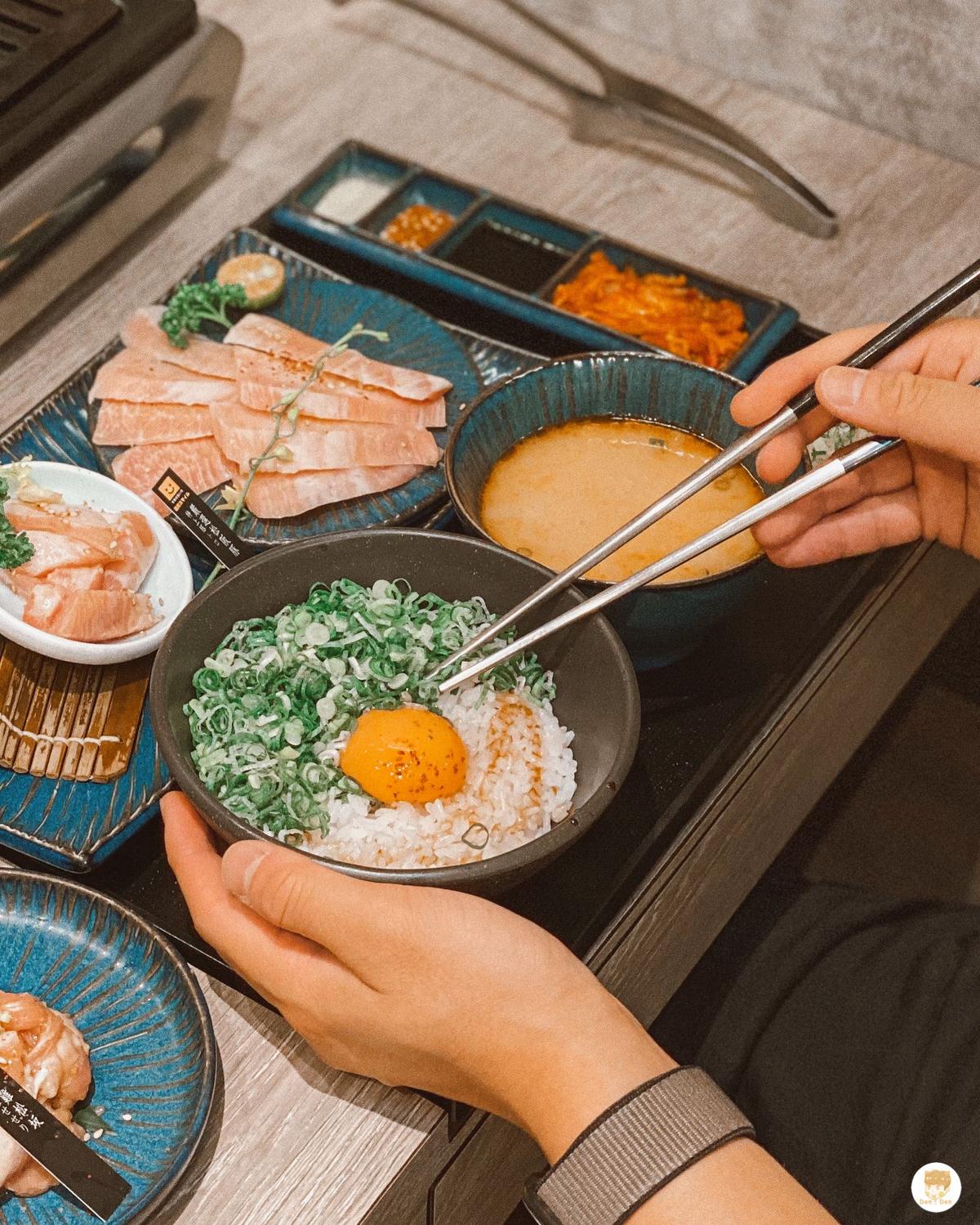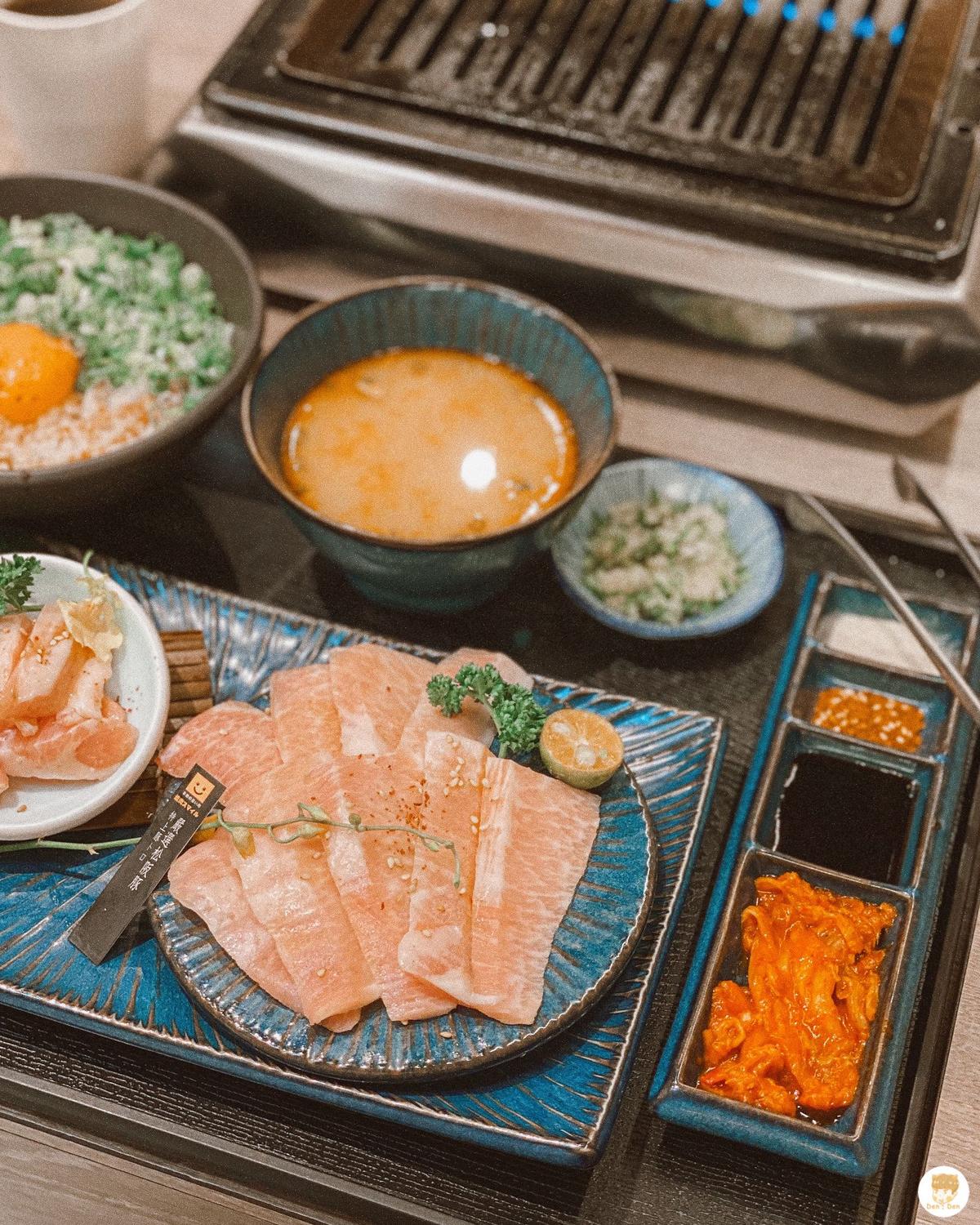 看一下菜單自己決定試試看最便宜的套餐ᴄᴘ值如何,套餐皆附沙拉、湯、白費、飲料、泡菜、醬料、鹽蔥($400元以上的套餐可以升級蔥油拌飯、蔥油玉子拌飯),總體看起來份量其實都還滿夠的。