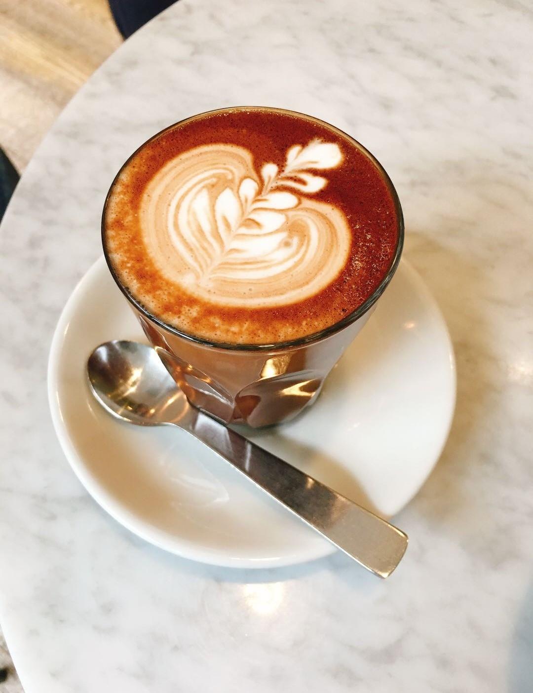 抬頭看menu黑板,我得了選擇困難症,這次就來個flat white,以及一杯肯亞手沖。然後約好的朋友來了,點了一杯摩卡。我問了老闆請問你們的espresso是偏甚麼樣的風味,老闆看起來有點酷,我以為我問錯話了。馬上自己接話說:是偏果香的嗎?接著老闆說話了:是巧克力。然後咖啡話題打開了,原來老闆是面酷心隨和。我實喝了一口,可可的味道濃郁,老闆說的店裡的espresso是混合了七種咖啡豆調出來的味道,是經典義式的咖啡館風味,深厚的風味,讓人有回到歐洲的錯覺。