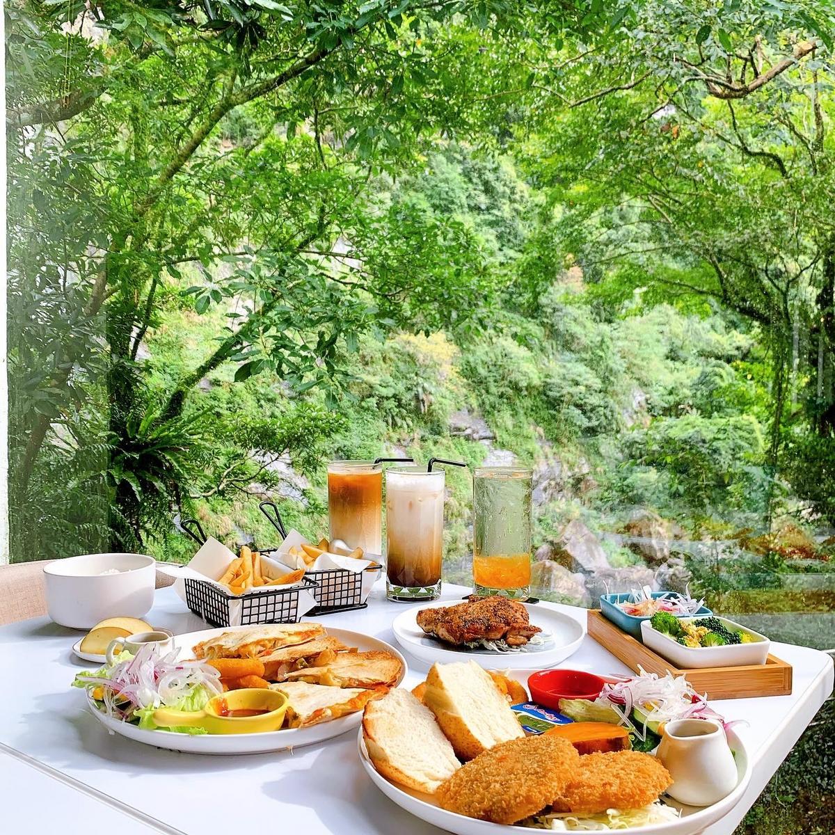 ✍🏻環境真的很舒服~有一個專門給大家拍照的網美沙發.背後直接就是瀑布!真的超美的啦♡總共3層樓.B1&1樓整個都是用玻璃屋我整個大愛❤️(冷氣也很涼🤣)2樓就是室外區(網美沙發)店家很貼心特別空了一些好拍的地方~
