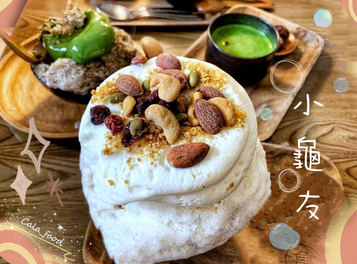 小龜友的配料口感都很特別 跟外面很不一樣 尤其是寒天凍 名字取得又好有質感 配料都隱藏在刨冰裡 吃的時候可以先品嚐到 再慢慢享受挖到配料樂趣 抹茶也是很濃郁 ~