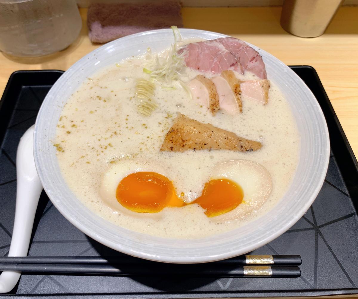 美味度:4.25 🌕🌕🌕🌕🌘 主打關西泡系拉麵 吃的是 豚骨鹽味特盛$280 湯頭表面有綿密的泡泡 喝起來濃又不會膩 細麵硬度剛剛好 配上豬叉燒、舒肥雞、雞腿肉、溏心蛋 真的好吃 吃完很滿足