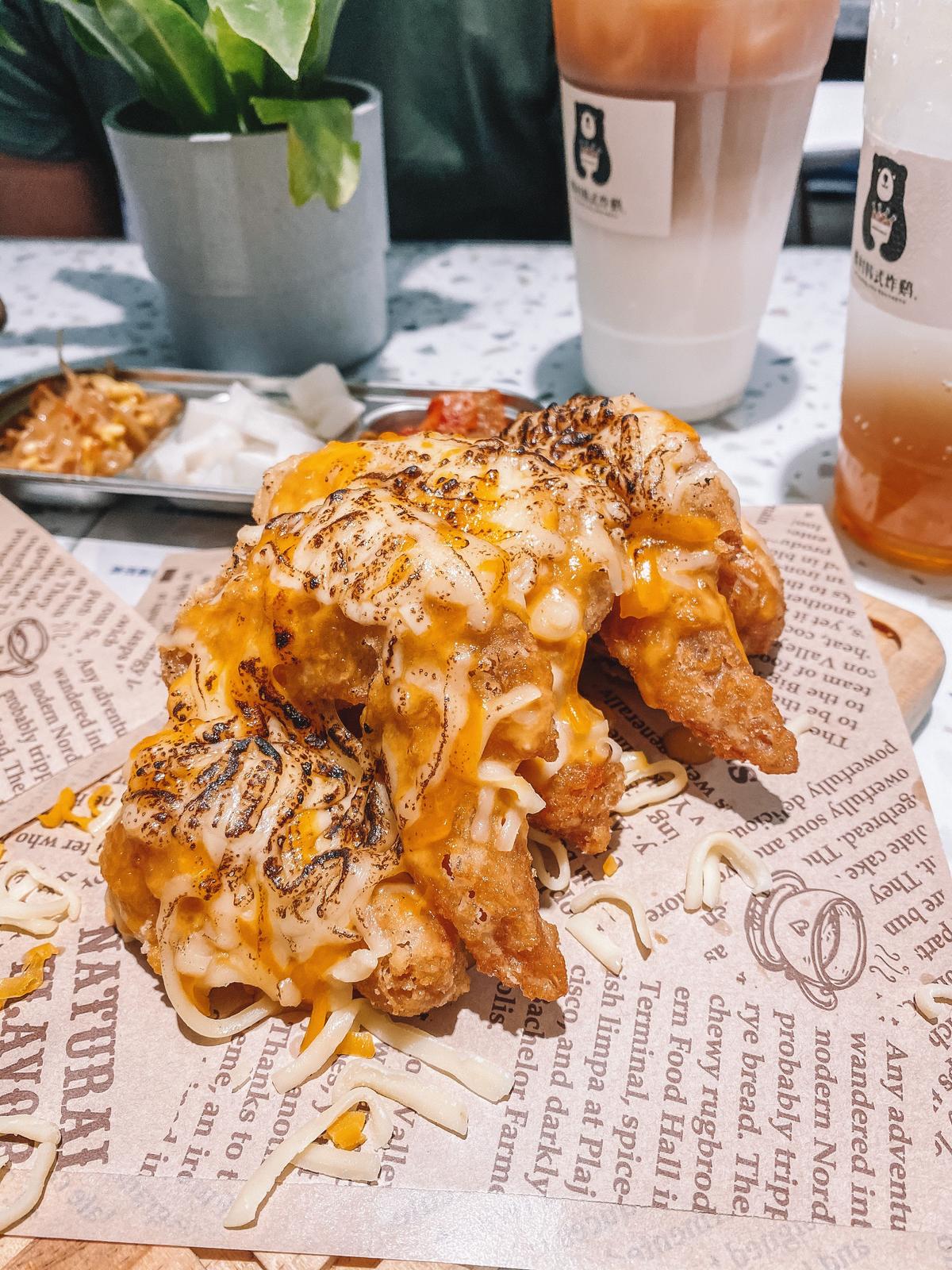 炸得酥脆的雞翅山上鋪了滿滿滿的起司