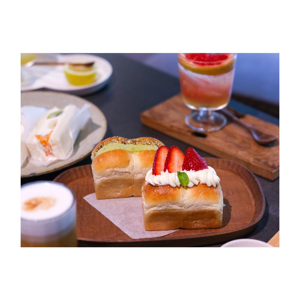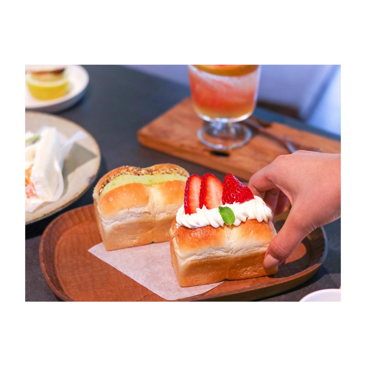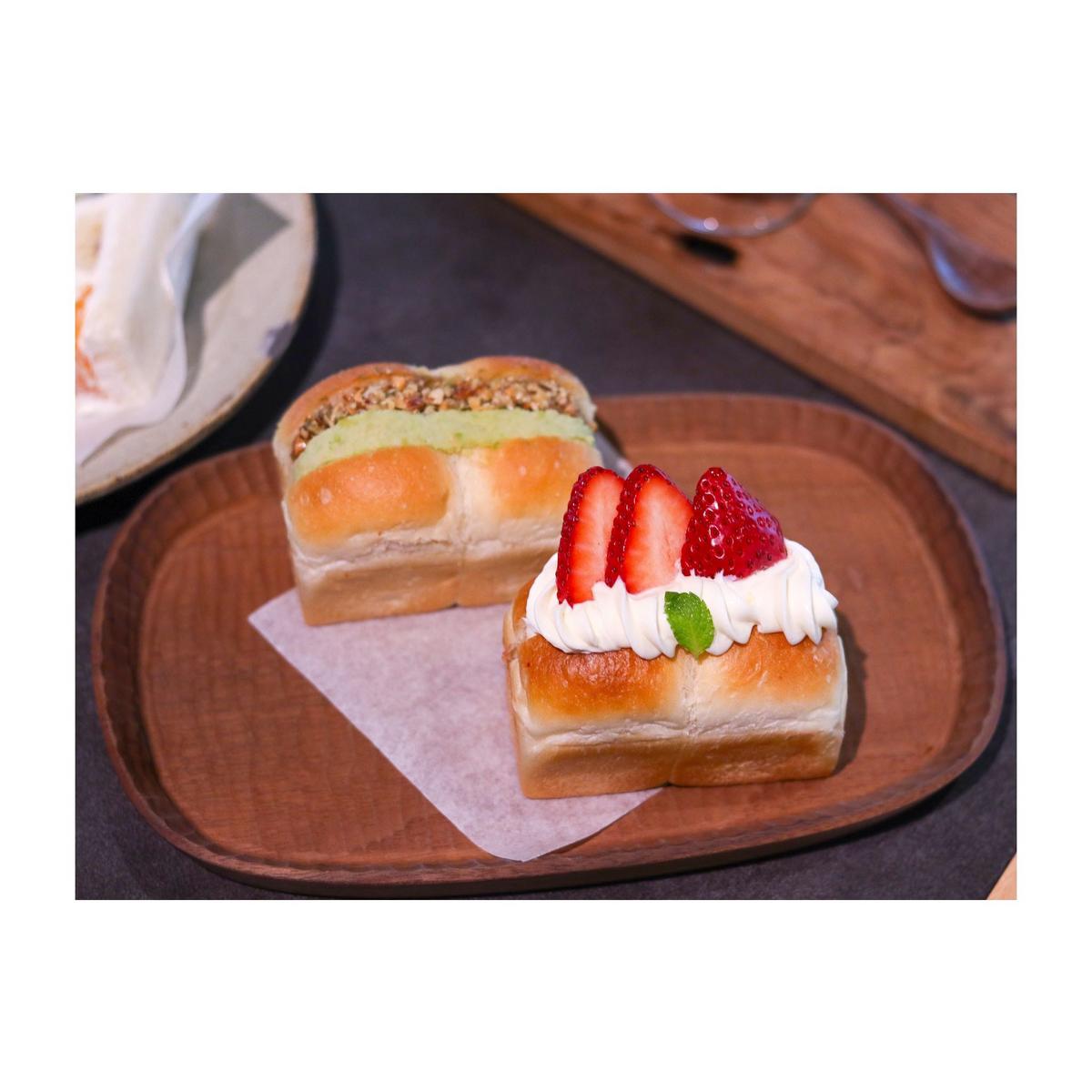 山形吐司可以選擇兩種口味,我們選了草莓乳酪和堅果毛豆泥,這裡的乳酪相當綿密,奶香濃郁,內餡還夾入新鮮草莓將和鮮奶油,口感層次多元,更別提吐司體的鬆軟再大大加分!堅果毛豆泥口感豐富,淡淡的香氣和滑順的口感,都讓我們一致推崇,真的好好吃呀!