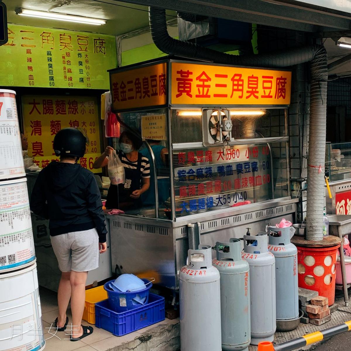 黃金三角臭豆腐,是一位貪食朋友在我移居汐止後,強烈建議一吃究竟的小店。內用區僅有三張桌椅,大腸麵線先上桌,40元的價格,份量很豐富,大腸也多,口味是讓人感到安心的口味。小份臭豆腐同樣40元,酥炸的外皮是我喜歡的輕盈脆皮、豆腐保有軟嫩口感,泡菜非常好吃,其中非常突出的特色在於醬汁,仔細一看,醬汁中有細細綠色碎末!竟然是九層塔!