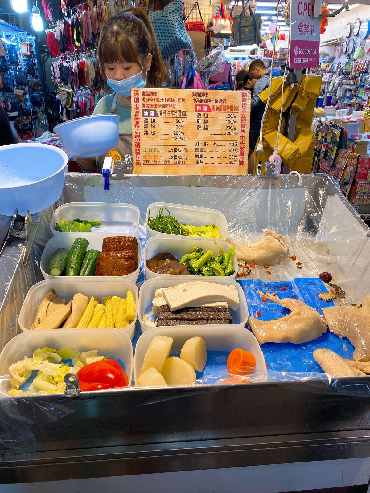 一家招牌寫著戰鬥機的醉雞/油雞攤位