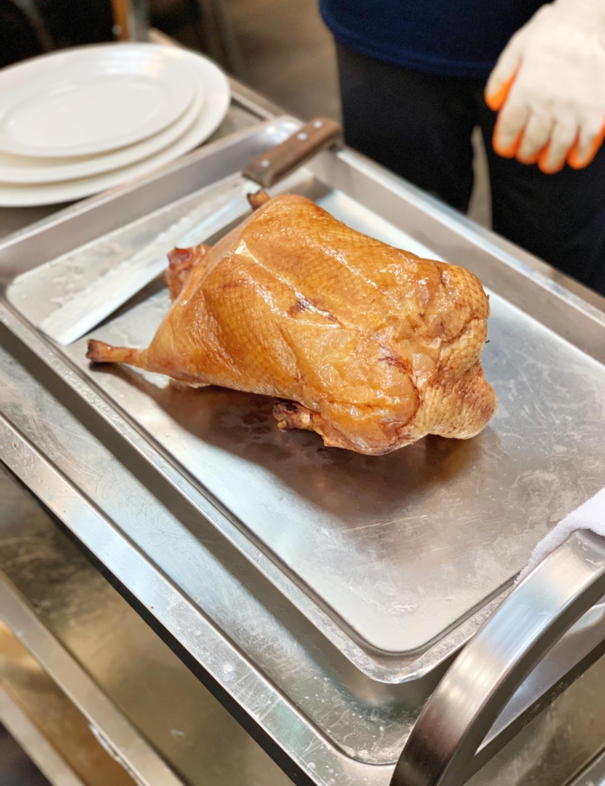 有小哥幫大家切烤鴨,全場都是小哥一人負責切,刀攻一流。