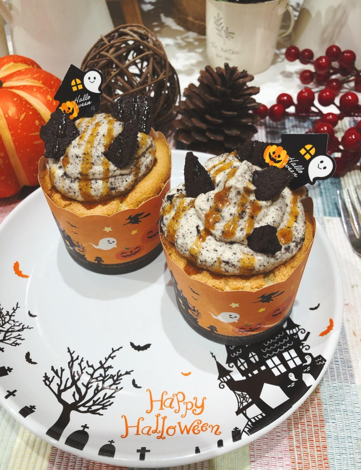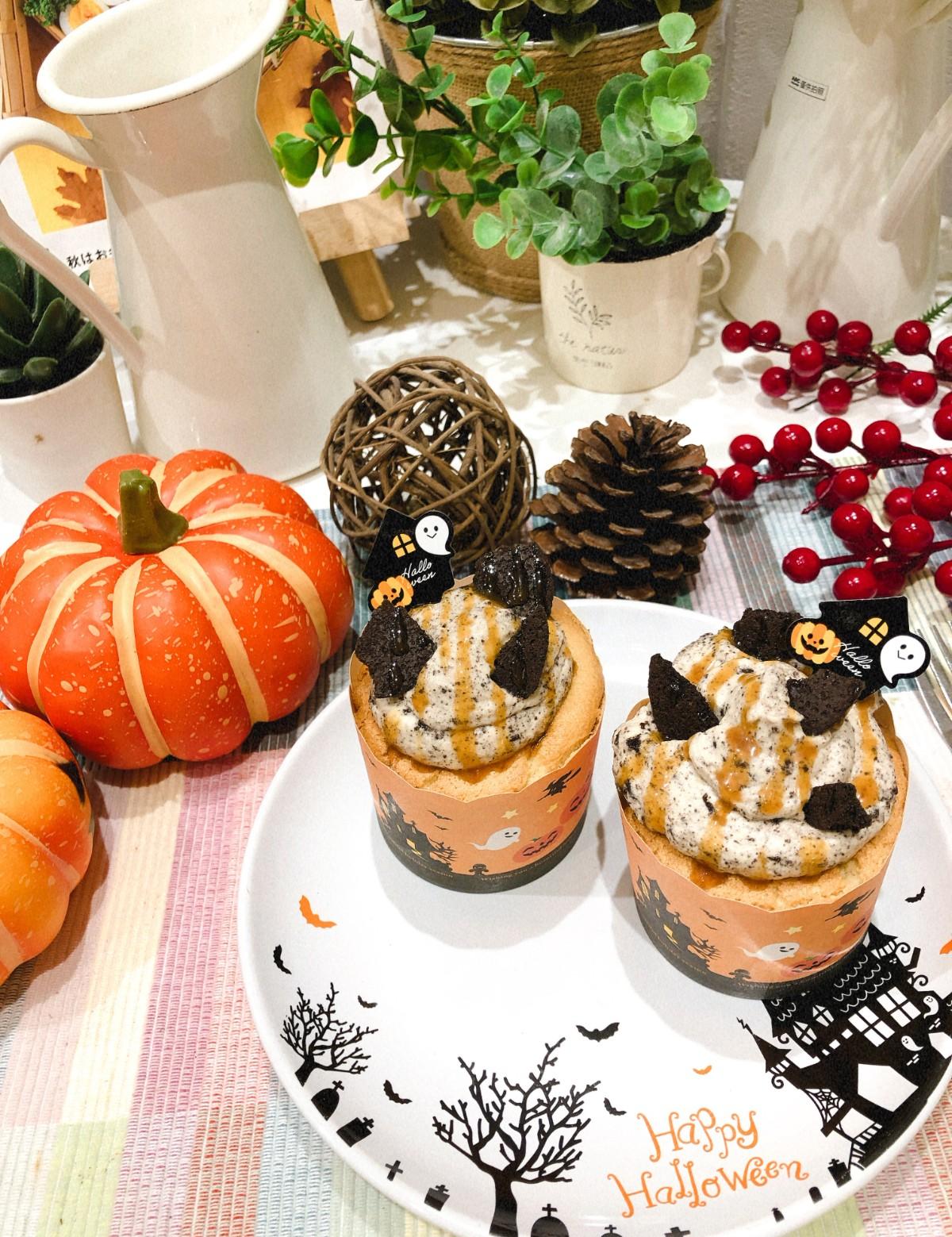 【いってきます,來去學烘焙】萬聖焦糖杯子蛋糕-可愛又方便的萬聖節杯子蛋糕。♡