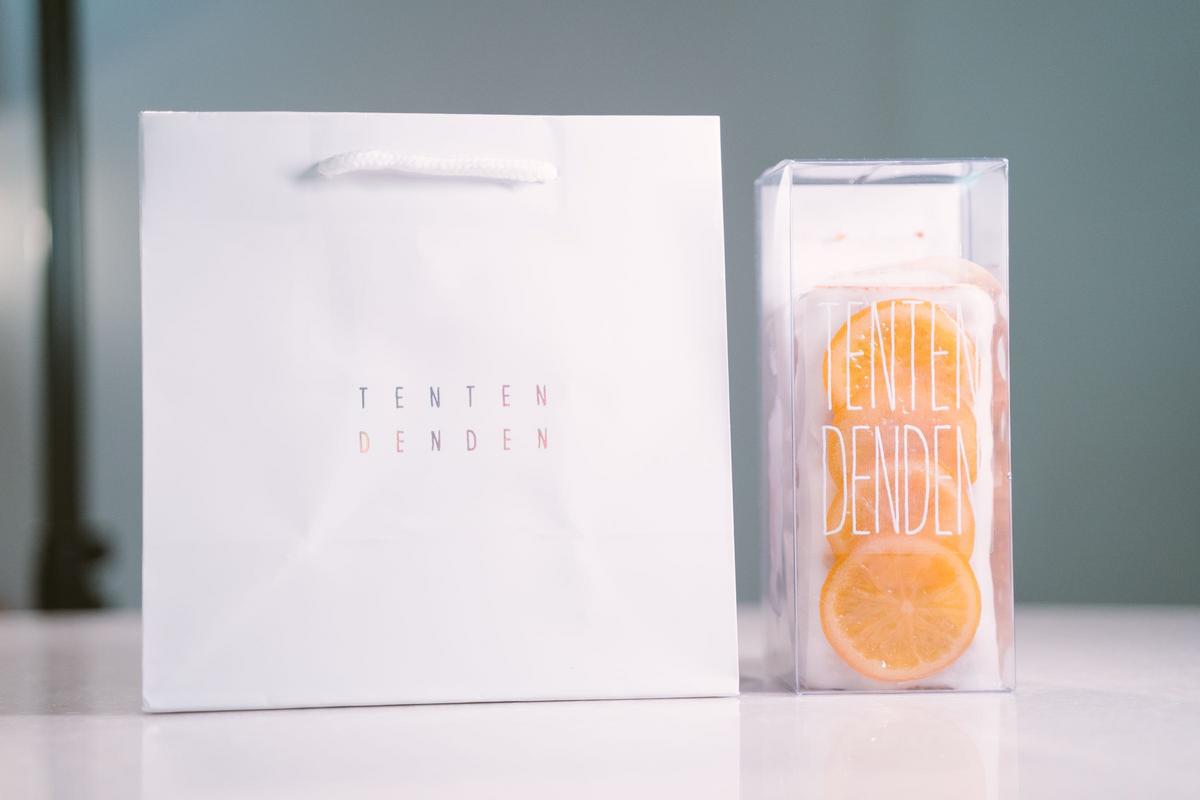 精緻的白色緞帶繫在透明的盒子上,白色的檸檬糖霜像雪,襯托金黃色的糖漬橙片閃閃發光✨