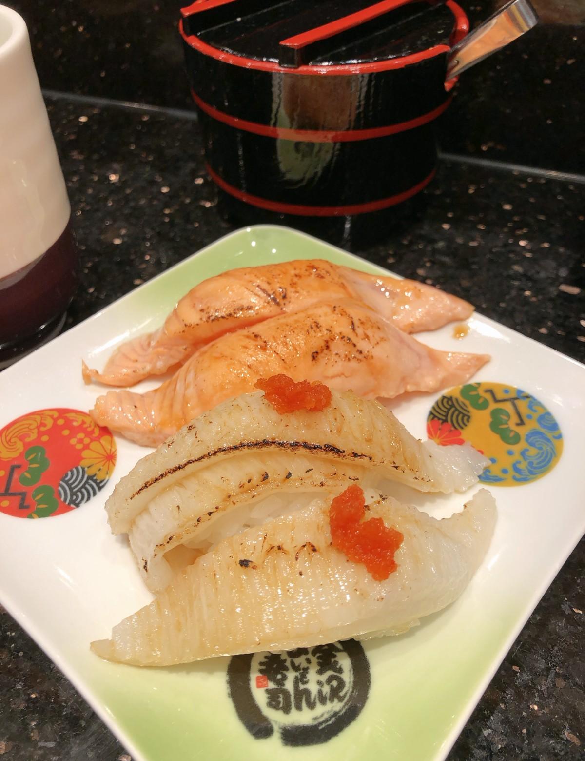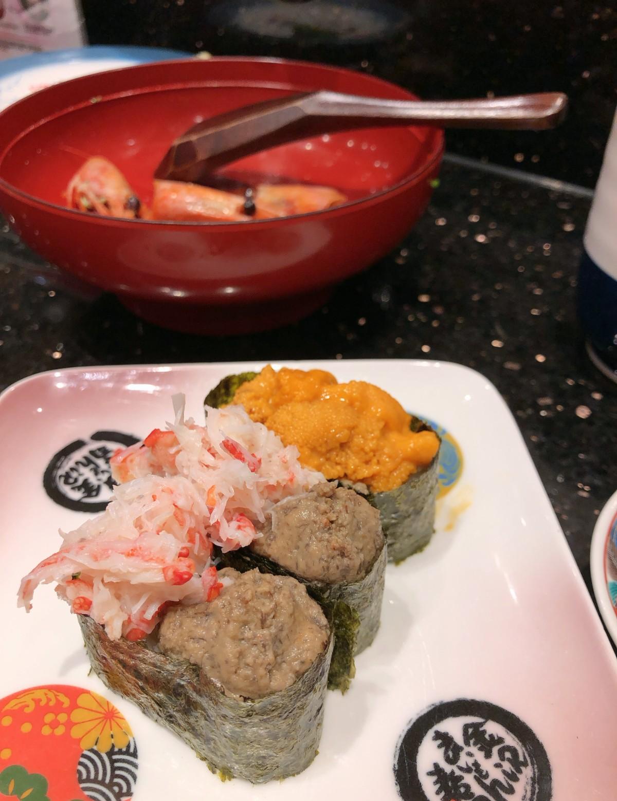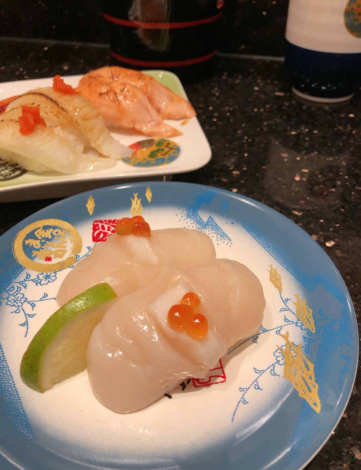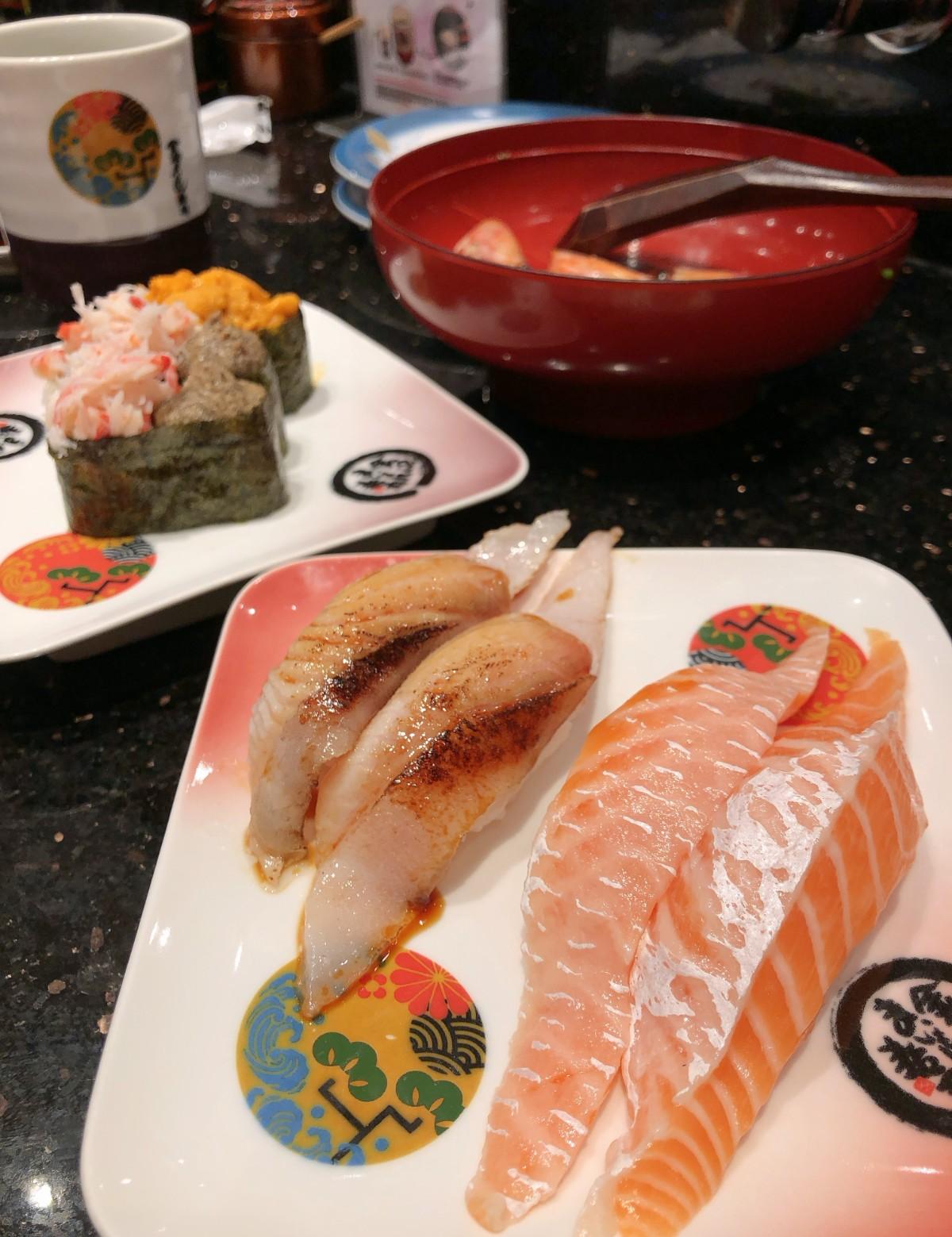 #金澤壽司 #迴轉壽司 #金澤 #金澤百萬石 #鮭魚壽司 #炙燒鮭魚壽司 #炙燒鰈魚緣側 #炙燒銀鱈 #北海道干貝 #海膽
