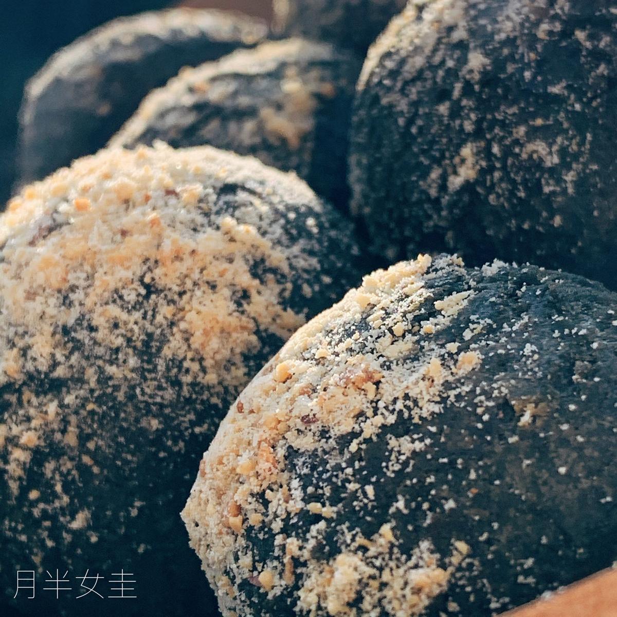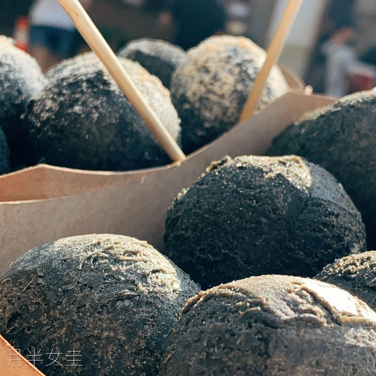 黑麻麻的地瓜球很有趣,絕對值得打卡分享,體積大約是芝麻球大小,表面油炸軟硬適中,冷卻後依然保持酥脆口感,地瓜球主體不會很甜,是我喜歡的地瓜球,加上花生粉多了一點風味,椒鹽口味更是我心中上乘之選,鹹脆酥甜。果然好一個黑心地瓜球。