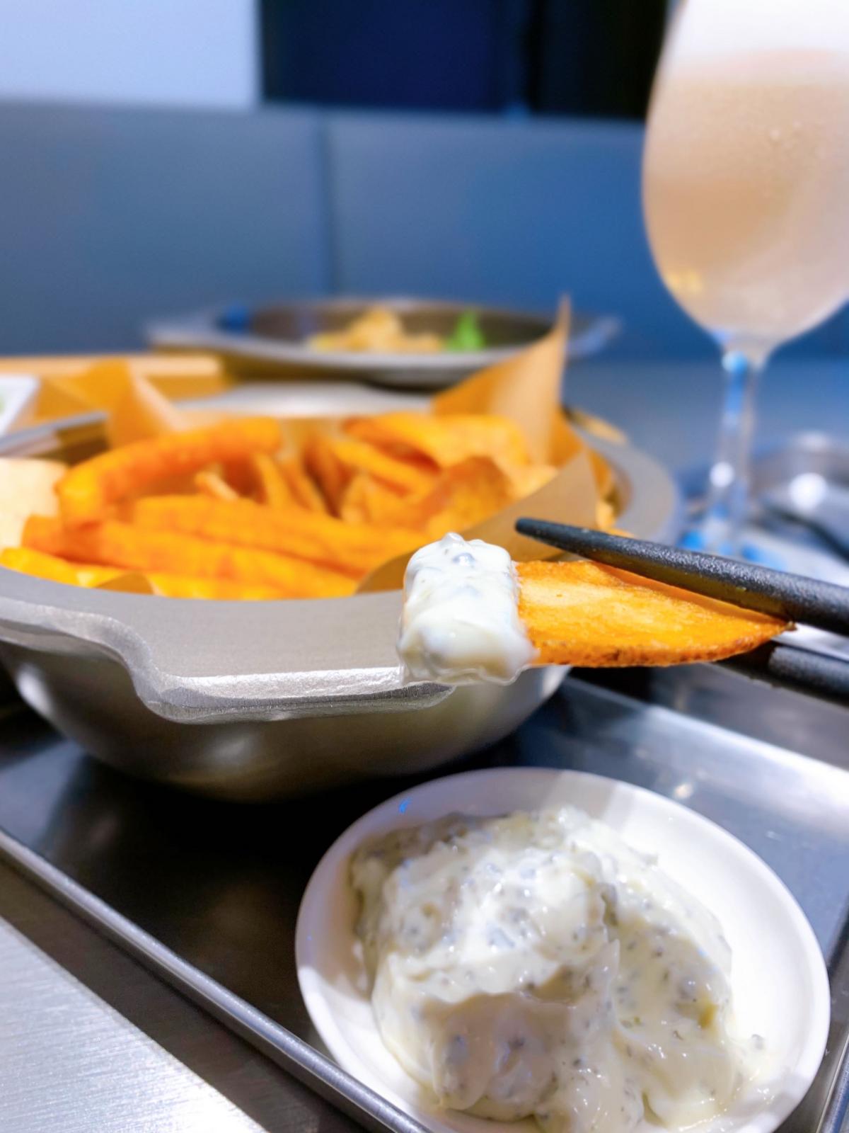 炸物點了薯薯拼盤 裡頭有薯條和薯片