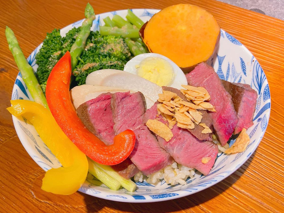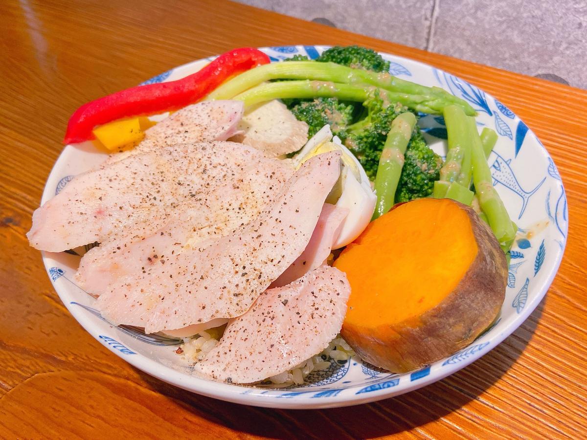 肉質本身柔嫩不柴,搭配各式蔬菜和地瓜🍠