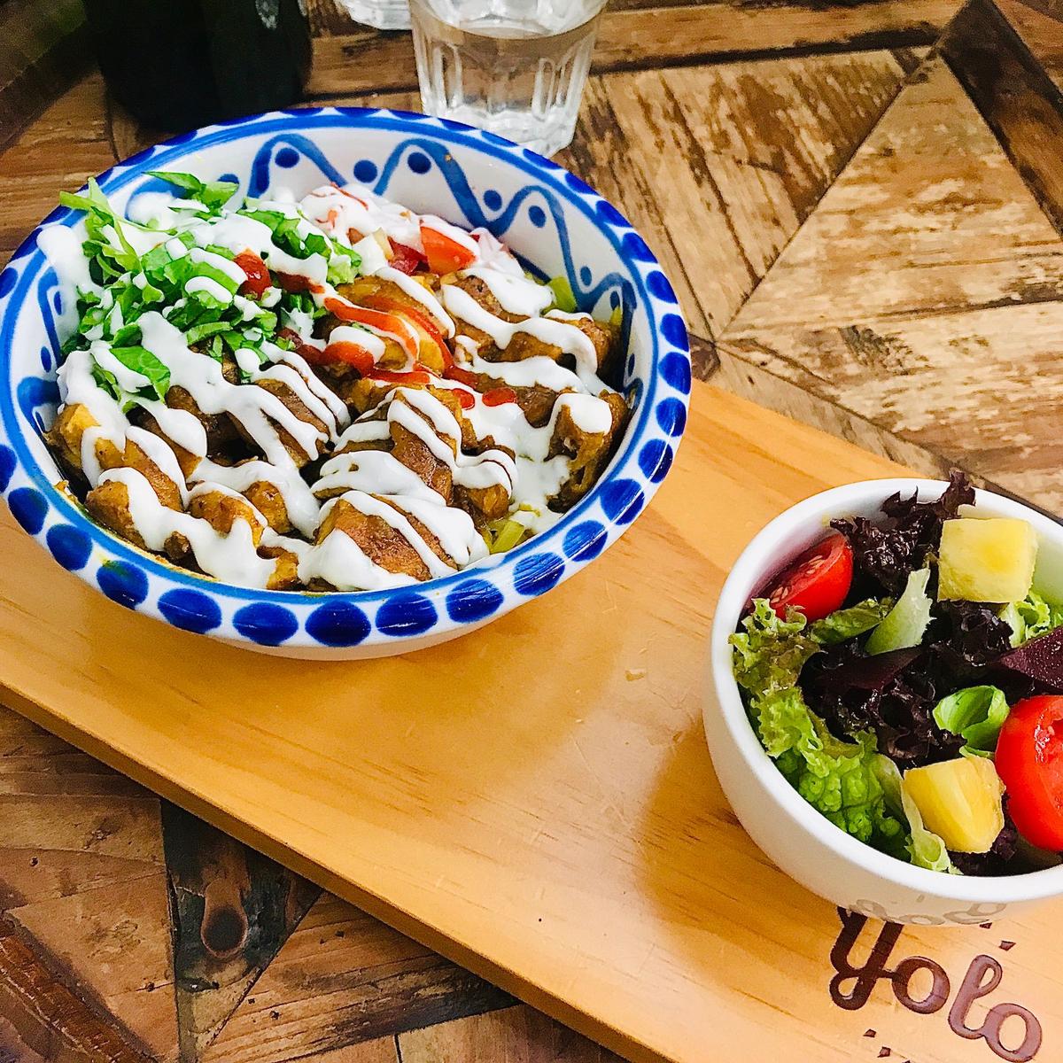 IG👉🏻#富佩愛美食 #富佩吃彰化 #富佩吃早午餐 店前半段是麵包店,後半段是用餐區,蠻隱密的,入口要從旁邊的停車場走到後面的小巷子裡,進去前還要用對講機告知,店員才會開門讓你進去,可說是個相當有個性的小店 👱🏻♀️紐約街頭雞肉飯 💰330 我喜歡菜跟飯拌在一起,香料味道很香,不會過鹹、食材都是新鮮的原型食物,但份量不多。