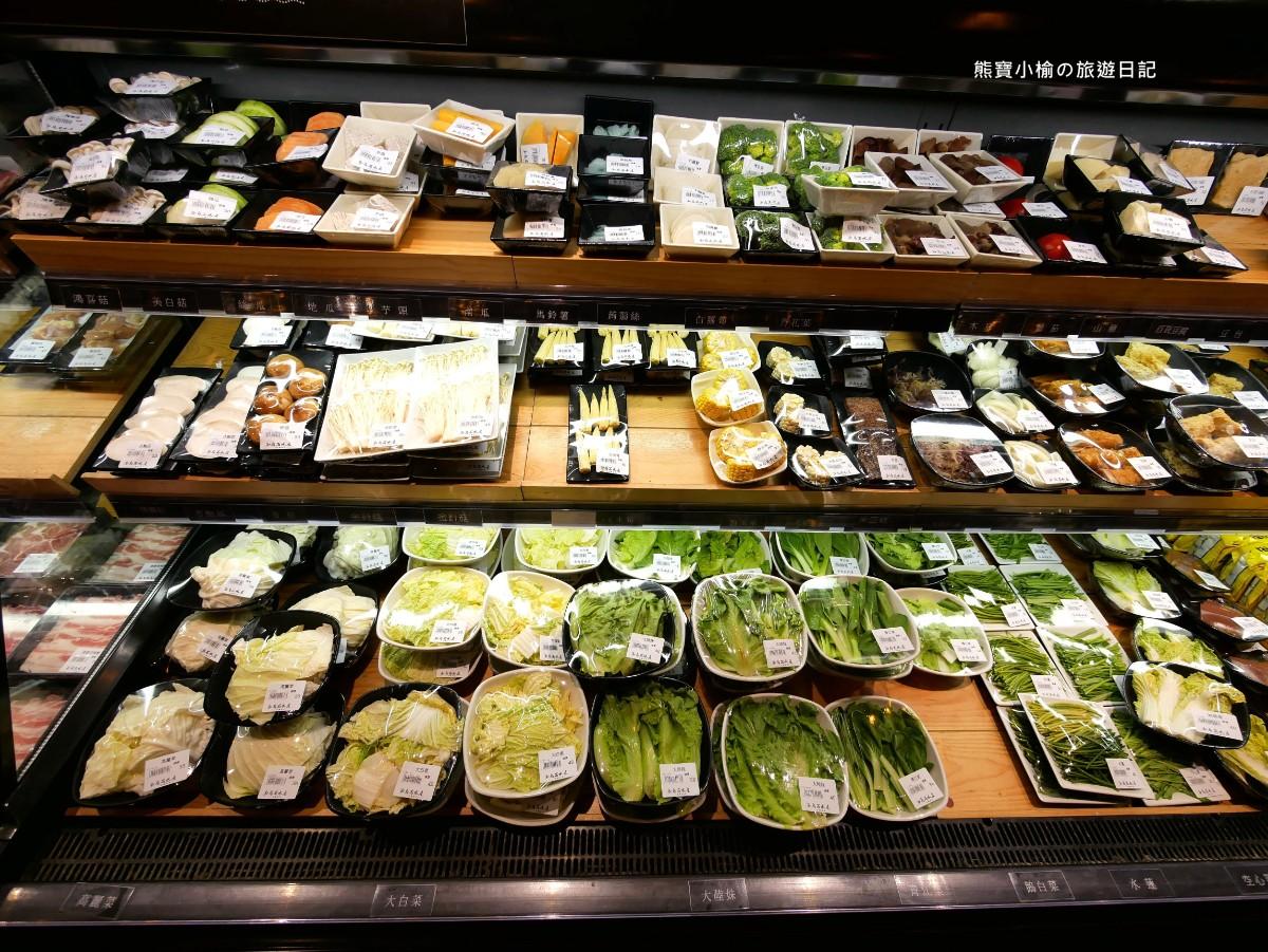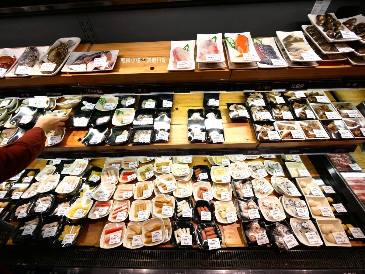 冷藏櫃分成海鮮、肉品、蔬菜、火鍋料,也有提供飲料和副食餐點。