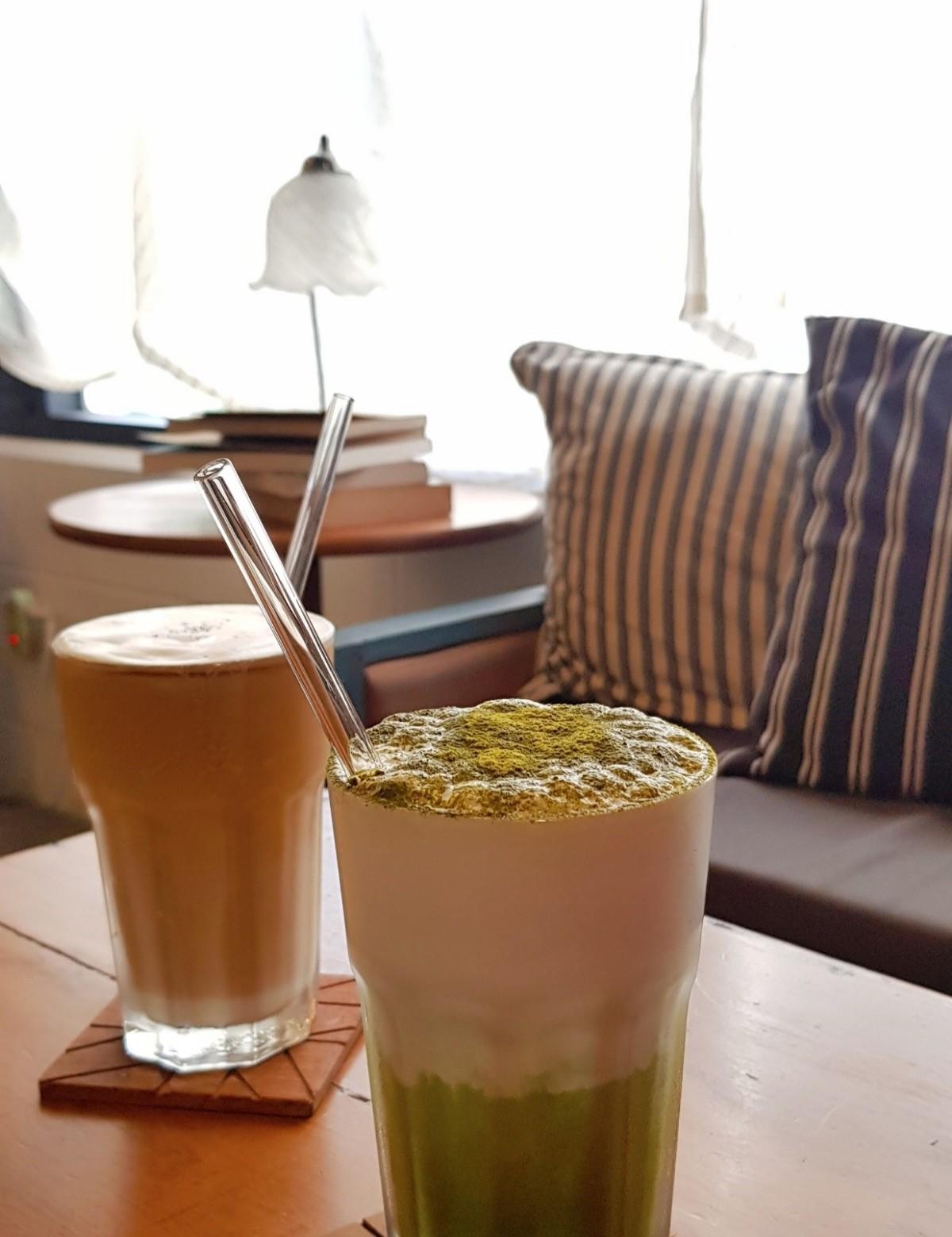 抹茶歐蕾如果味道可以再濃郁一點會加分非常多,因為本身喜歡喝口感濃郁的抹茶,所以這款對我來說味道偏淡。咖啡歐蕾味道中規中矩沒有特別突出但跟甜點搭配起來蠻順口的。