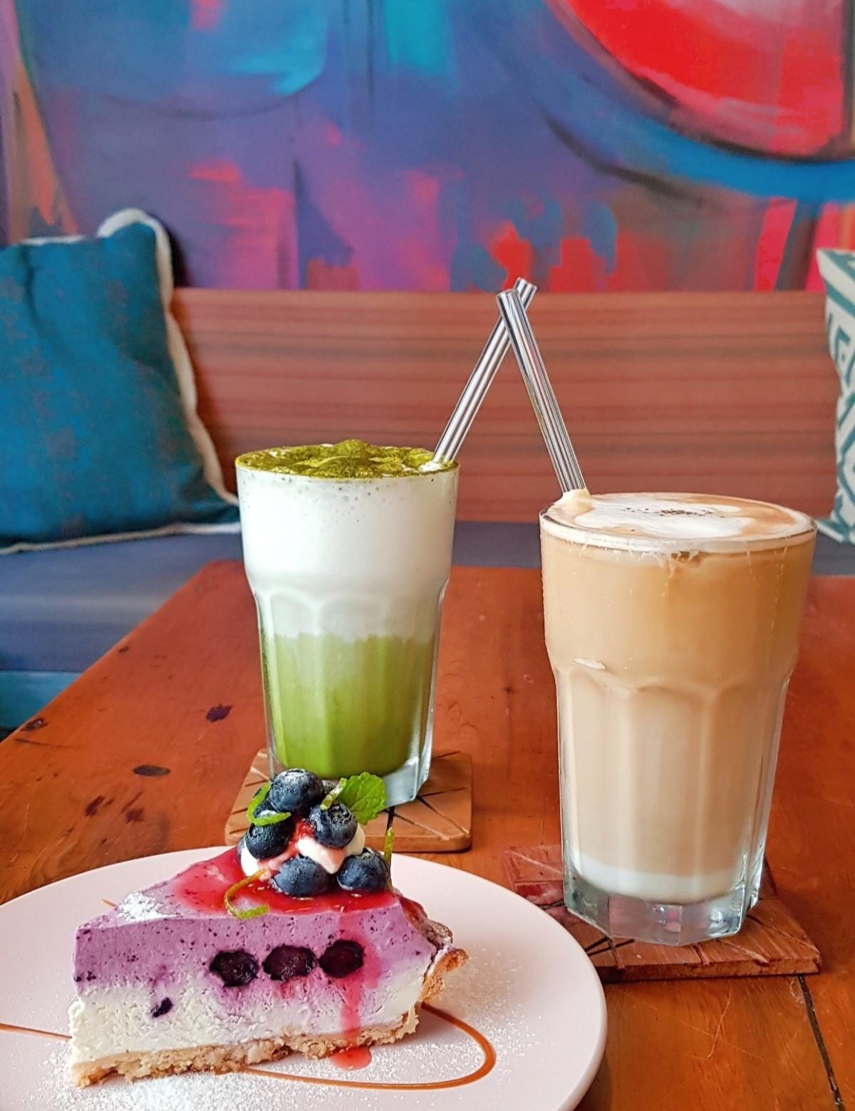 新鮮藍莓生乳酪塔 × 重咖啡歐蕾 × 抹茶歐蕾