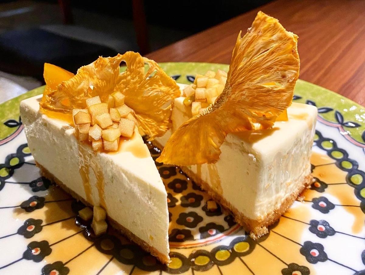 綿密的蛋糕上面是鳳梨乾跟水果丁