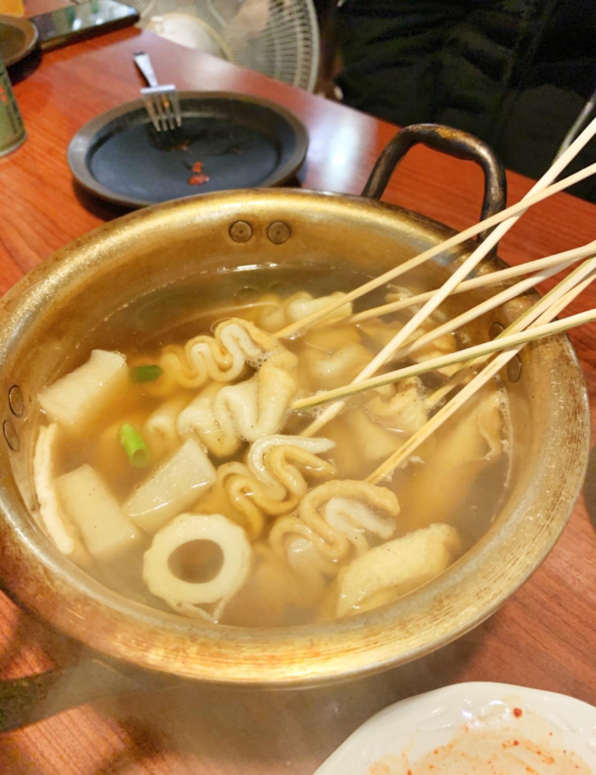魚板湯,湯帶有胡椒香氣,很好喝~大概是關東煮的湯,然後胡椒味重一點的感覺。魚板很Q彈,嚼久了會有魚漿的香氣,不沾醬油就很好吃