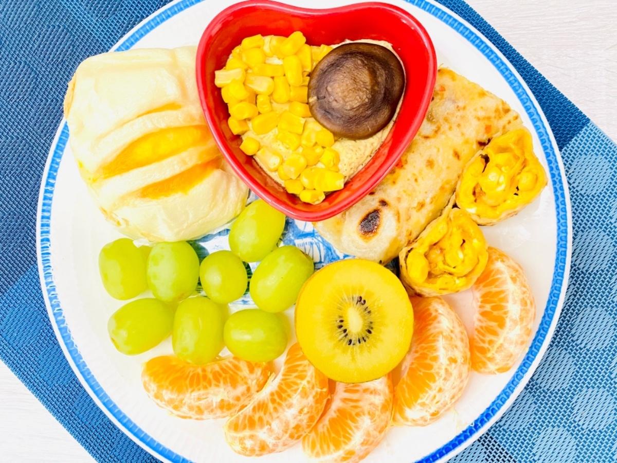 水果:橘子🍊/香菇玉米蒸蛋/葡萄🍇/奇異果